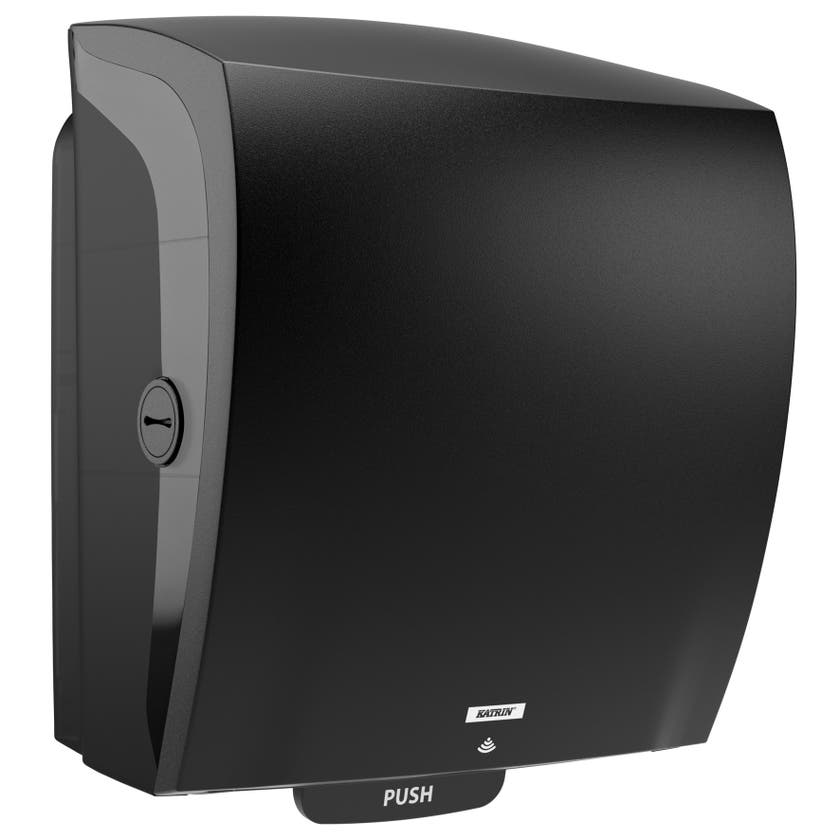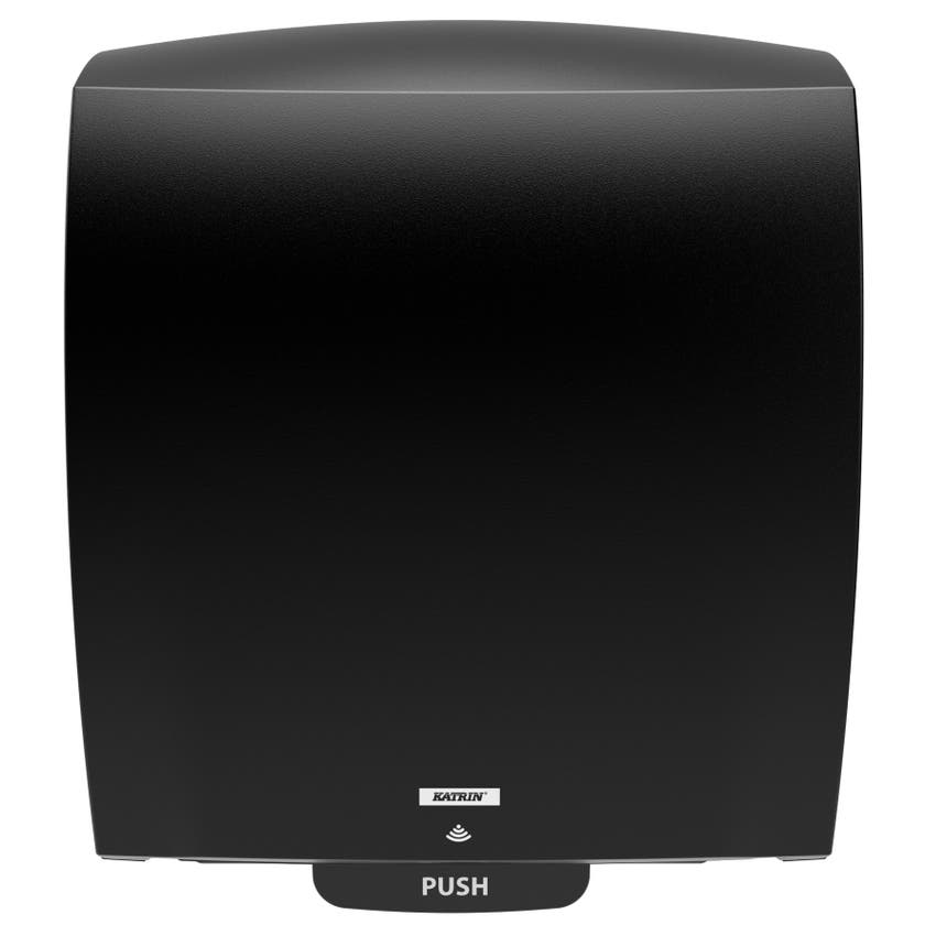 Hybrid från Katrin är en sensorstyrd handduksdispenser för plana pappersark. Ger en kontrollerad förbrukning och besökaren vidrör endast det ark som ska användas. Sensorn aktiveras automatiskt när besökaren placerar händerna i närheten av dispensern. Det går att anpassa aktiveringsområdets storlek i tre olika lägen för att tillgodose olika behov. Drivs av batterier, men om batterierna tar slut kan användaren mata fram papper manuellt, vilket innebär att dispensern fortsatt är funktionsduglig i väntan på batteribyte.