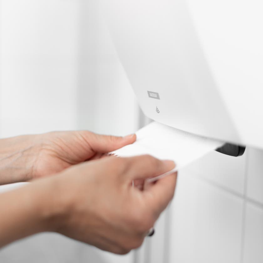 Papperslängden kan ställas i tre olika lägen: S, M och L. Med inställning S, vårt högkapacitetsalternativ, kan du få ut 800 ark. Passar platser med hög besöksfrekvens. Effektivt pappersutnyttjande, designat för att maximera pappersanvändningen på varje rulle. Dispensern är tillverkad av ABS (Acrylonitril Butadiene Styrene) och PC (polykarbonat) som tål användning i krävande miljöer. Hela dispensern kan återvinnas.