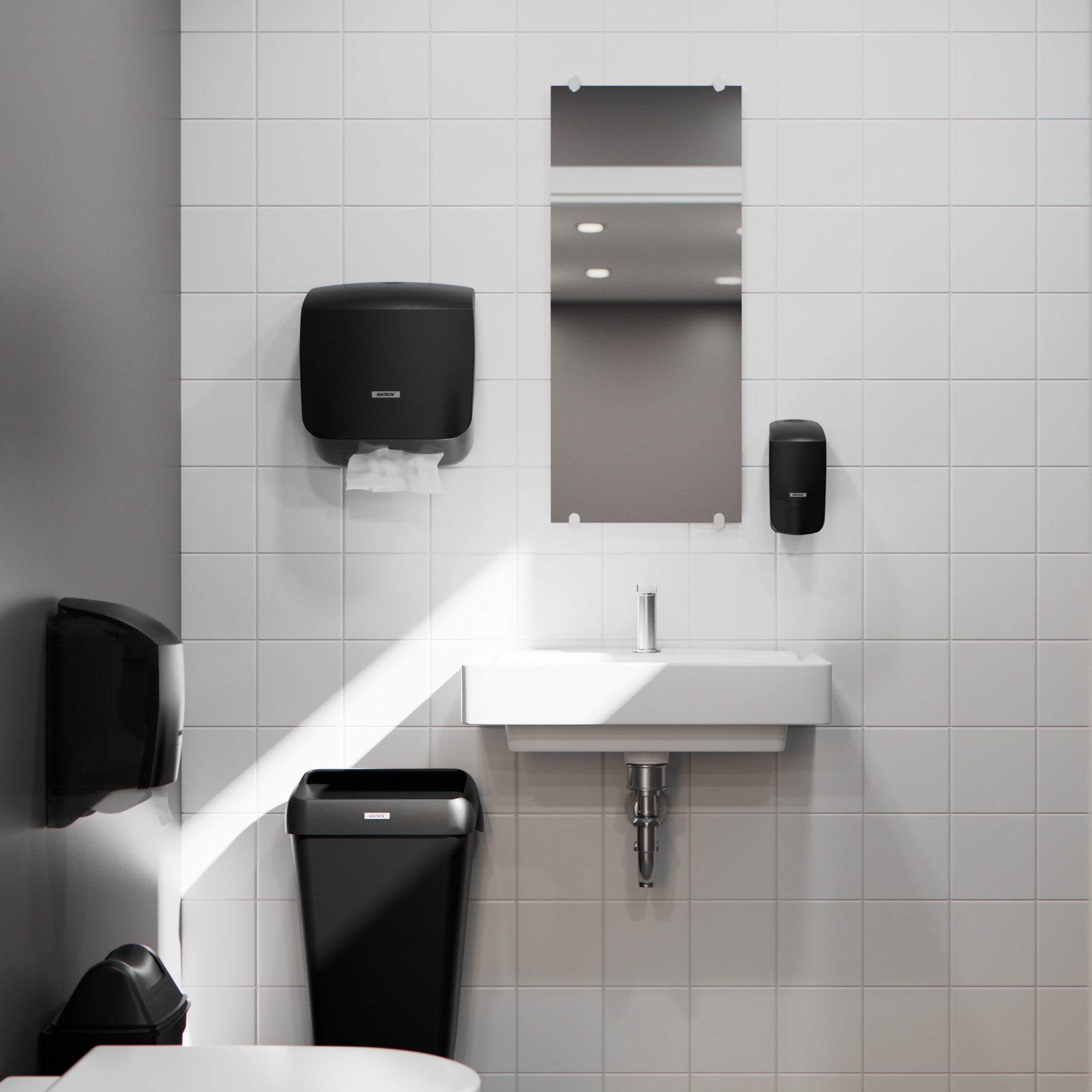 Handduksdispenser S från Katrin är en kompakt modell designad för trånga utrymmen med färre besökare. Öppen och flexibel dispenserlösning i vilken alla vikta handdukar passar, en del av Katrins koncept freedom of choice. Kontrollerad förbrukning med utmatning ark för ark. Kan användas med eller utan nyckel. Lätt att kontrollera pappersnivån, tack vare transparanta sidopaneler. Locket öppnas nedåt, för enkel påfyllnad i trånga utrymmen. Transparent bakstycke för enkel installation.