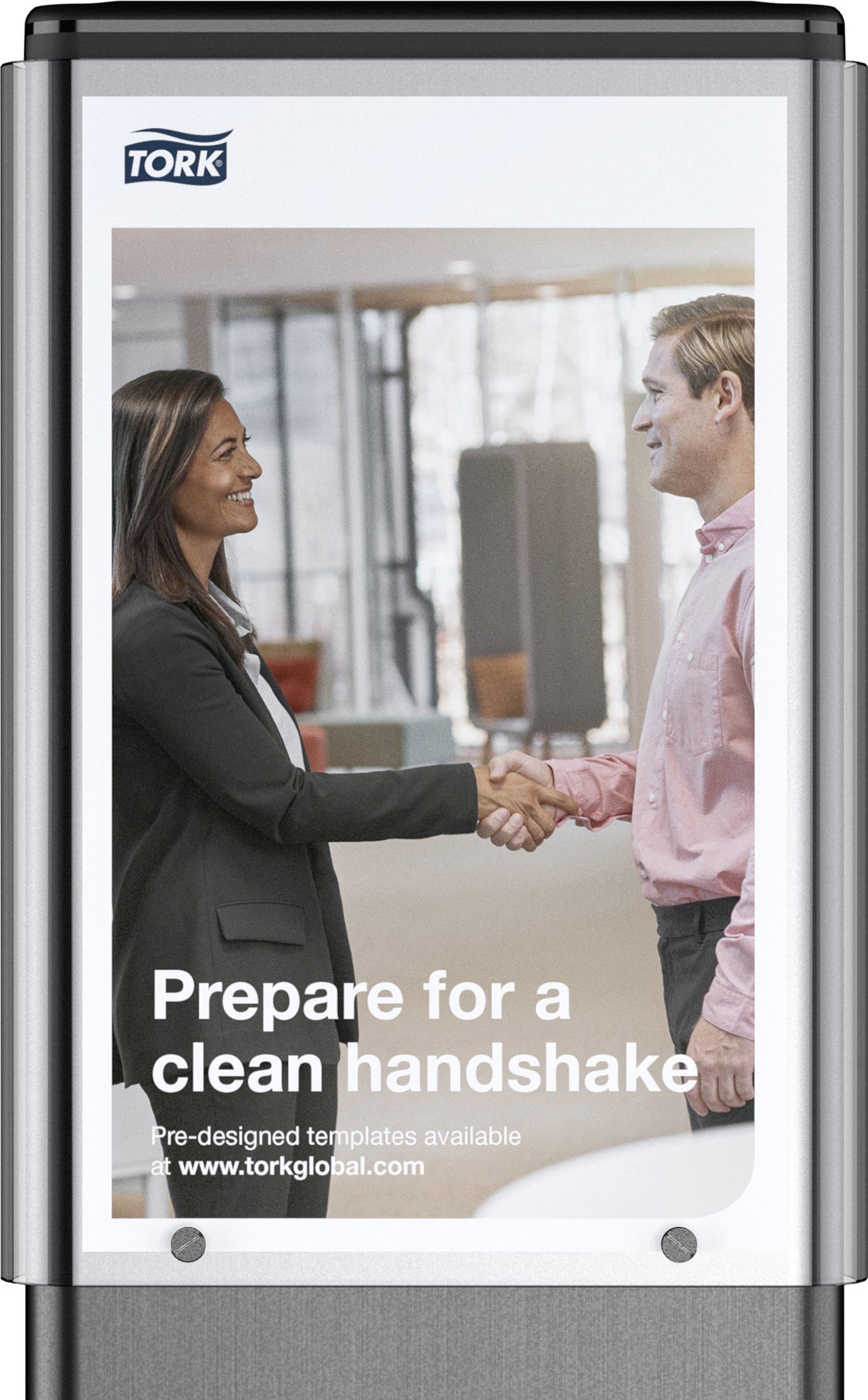 Infofönster som tillbehör till Tork Hygienställ, är ett kommunikationsverktyg som uppmuntrar till att förbättra hygienen på kontor och andra publika platser. Det gör det enkelt för anställda, gäster och besökare att hålla god handhygien genom att alltid ha handdesinfektion och servetter nära till hands. Det anpassningsbara informationsfönstret fungerar som ett verktyg för reklam och information där du kan kommunicera med dina medarbetare, besökare och gäster. En flexibel lösning som ger möjlighet att informera och samtidigt uppmuntra till att använda Tork Hygienställ Hygienstället blir både en påminnelse om vikten av god handhygien och visar att du bryr dig om deras hälsa. Designen är stilren och snygg och smälter in perfekt i ett modernt kontorslandskap. Flexibel anpassning för både Tork Image Design™ och Tork Elevation line dispensrar. Stabilt nog för både manuella och sensordrivna dispensrar.