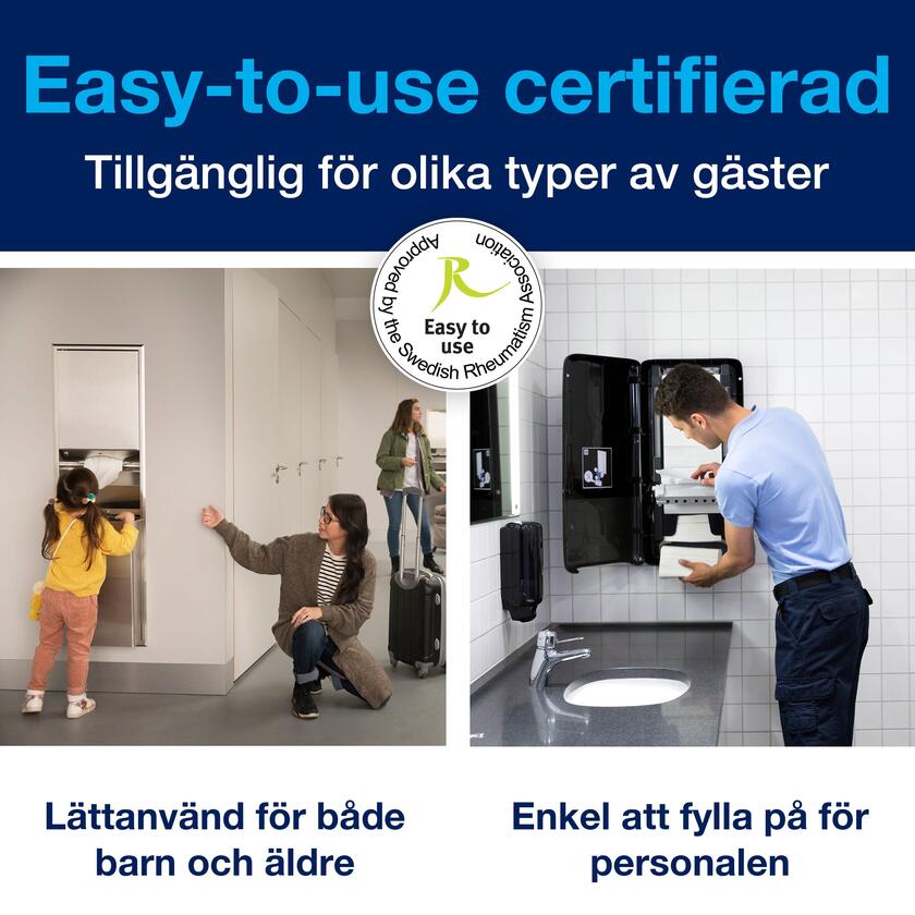 - Continuous™ handdukssystem säkerställer att en handduk alltid finns tillgänglig