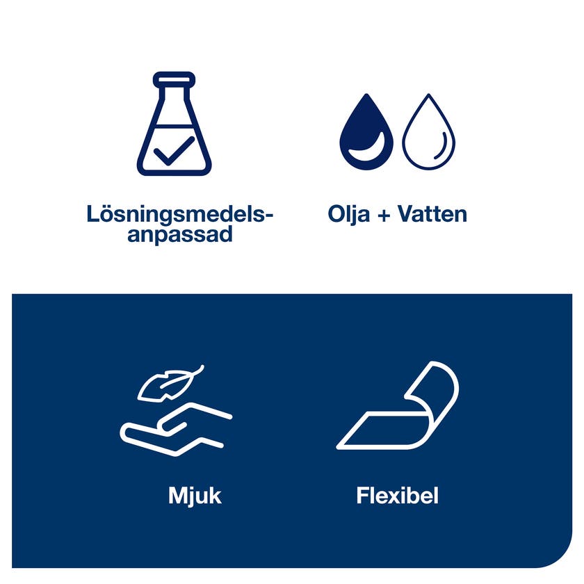 - Klarar av de flesta lösnings- och rengöringsmedel