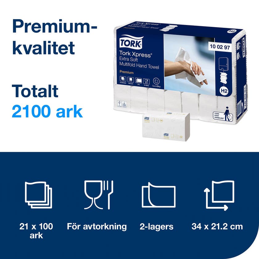 ![]() | 2514106 | Pappershandduk Tork Premium H2 2100/f | 21 cm | 34 cm | 34 cm | 4-Paneler | H2, Extra soft | 2100 | I lager 1-3 vardagar | 1 123.75 kr/kt |