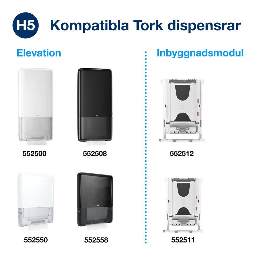 Pappershandduk Tork PeakServe® Continuous™ H5. Leverera mjukhet och prestanda med dessa handdukar. Underhåll av välbesökta toalettutrymmen kan vara en utmaning, inte minst när gästerna förväntar sig handdukar som både är mjuka och effektiva Dessutom kan gästerna torka händerna snabbt eftersom pappershanddukarna är 20 % mer absorberande än refiller i Universal-kvalitet. De är även idealiska om du vill undvika köbildning i välbesökta toalettutrymmen, då dispenserns höga kapacitet säkerställer att pappershanddukar alltid finns tillgängliga. Njut av det moderna utseendet på den högblanka dispensern från Tork Elevation designserie.