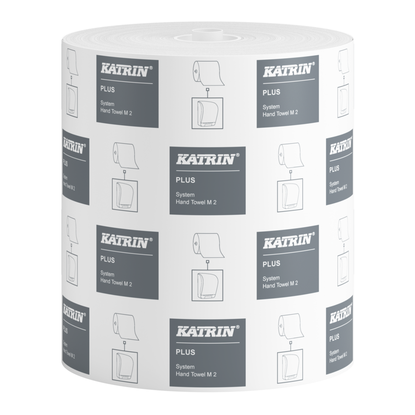 Torkrulle Katrin Plus M2. Katrin Plus System towel M2. Ett mjukt och starkt papper med mycket hög absorptionsförmåga. Hygiensk lösning där plana ark matas ut i lagom storlek för kontrollerad förbrukning.