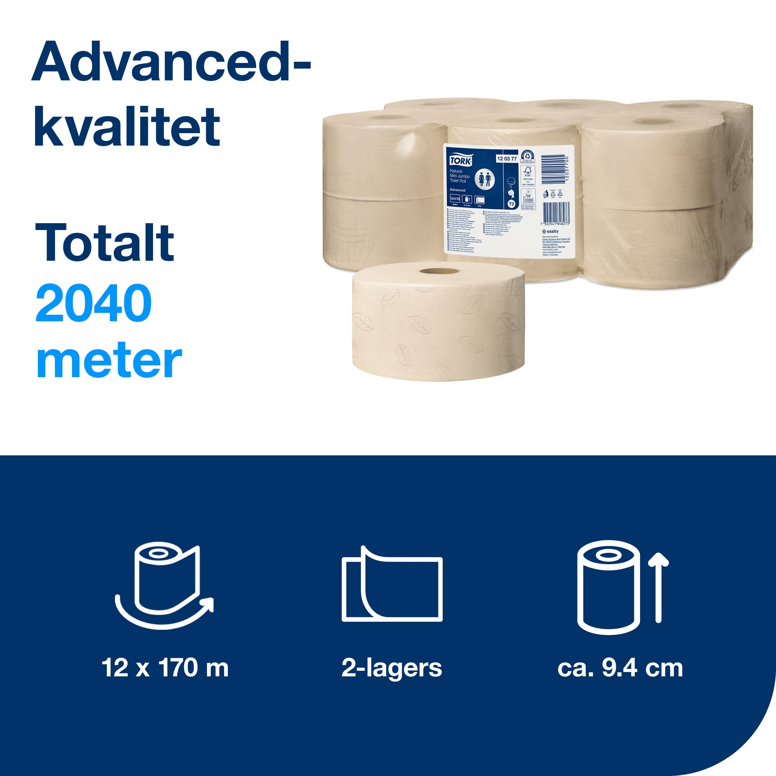 | Namn | Toalettpapper Mini Jumbo T2 Natur Advanced 12 rullar/trp |