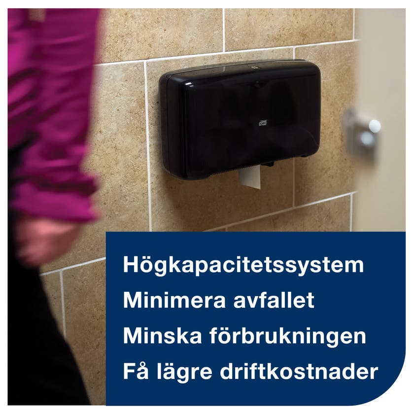 Toalettpapper T2 Natur Advanced Tork Mini Jumbo. Systemet Tork Mini Jumbo T2 håller mer toalettpapper än standardrullar. Spara tid och pengar med detta 2-lagers toalettpapper. Passar platser med medelhög till hög besöksfrekvens, och erbjuder mycket mer papper än standardrullar, vilket innebär färre påfyllningar.