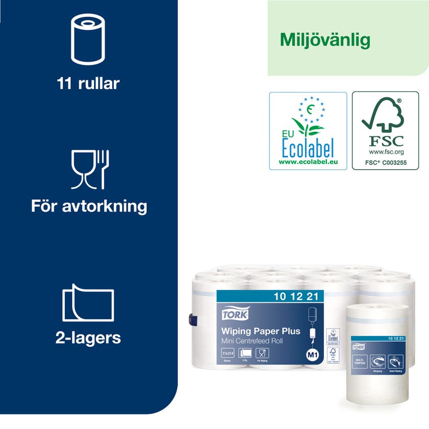 TORK Avtorkningspapper Plus M1, är ett 2-lagerspapper som passar perfekt för att torka upp vätskor och torka händerna samt ytor. Torkpappret kan användas i Tork® Dispenser Mini Centrummatad - M1, en kompakt och mångsidig lösning med dispensern. Starkt och absorberande handtorkpapper som minskar pappersförbrukningen.