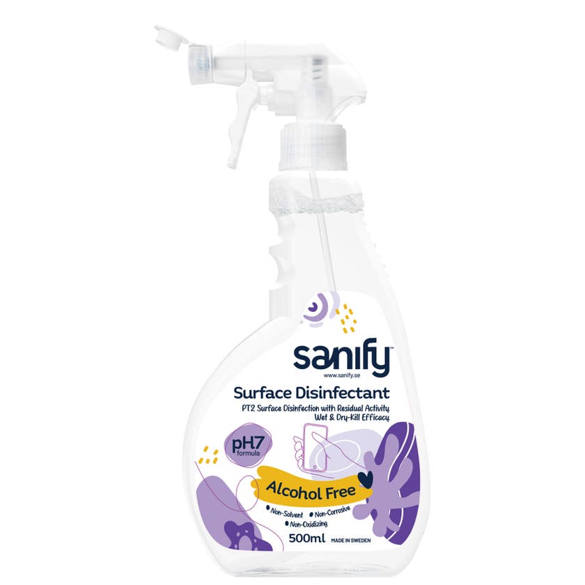 Alkoholfri ytdesinfektion från Sanify är en antibakteriell formula som tar dör på bakterier och minskar infektionsspridning. Avdunstar ej. Dokumenterad långtidsverkande effekt. Ej korrosiv. Ej upplösande. Dokumenterad effekt mot Noro- och Coronavirus. Finns i olika förpackningsstorlekar, både som flytande och skum.