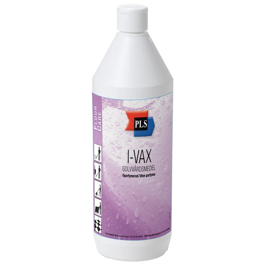 I-Vax från PLS är rengör och skyddar alla typer av hårda golv såsom linoleum, plast och sten. Dubbelverkande effekt som både rengör och skyddar golvet, vilket gör att den ersätter traditionell städmetod med golvpolish och såpa. Medlet har bra vattenavvisande egenskaper, behåller lystern på dina golv och förlänger livslängden på golvet. Eliminerar behovet av kraftiga polishborttagare – minskar belastningen på miljö och användare.