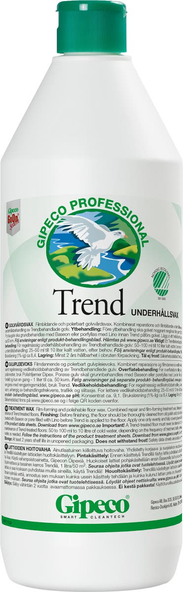 Trend Golv/Underhållsvax det slitstarka golvvaxet för ytbehandling av alla golv. Bildar en elastisk, hård, smutsavvisande och mycket lättstädad ytfilm. Trend kräver mindre arbetsinsats än polish- och mjukvaxbehandling.