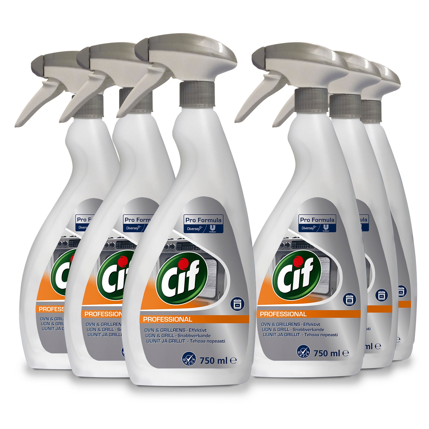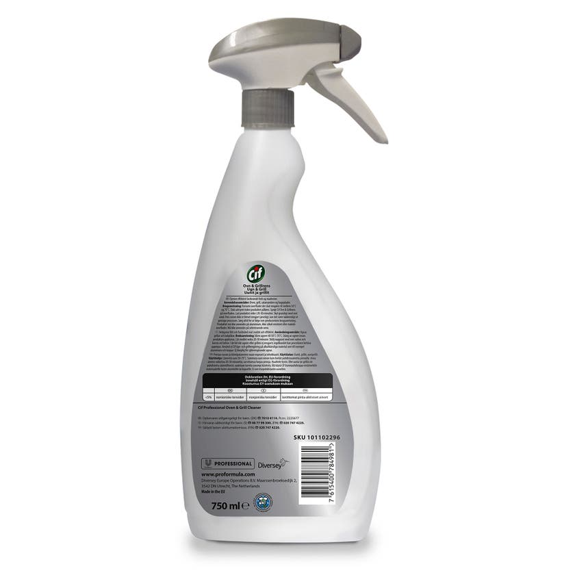 Cif Pro Formula Oven & Grill är ett giftfritt, kraftfullt rengöringsmedel som tar bort envisa fett- och kolavlagringar från ugnar och grillar. För användning på ugnar, grillar och andra ytor för svårbemästrade fett- och kolavlagringar. Får inte användas på aluminium, icke-alkalibeständiga ytor eller självrengörande paneler. Tar snabbt bort hårt intorkat fett och inbränd mat. Lämplig för ugnar, grillar, salamandrar och stekplattor. Säker att använda, icke frätande och inte brandfarlig.