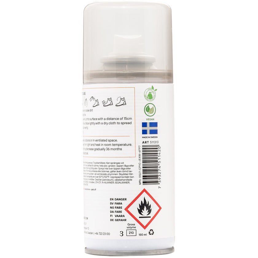 Skovax i sprayform från Springyard – bara att spraya och låta torka. Den ofärgade sprayen är framtagen på bivax och naturliga oljor som vårdar och mjukgör alla typer av släta läderprodukter. Sprayen verkar både smuts- och vattenavvisande. Tillverkat i Sverige.
