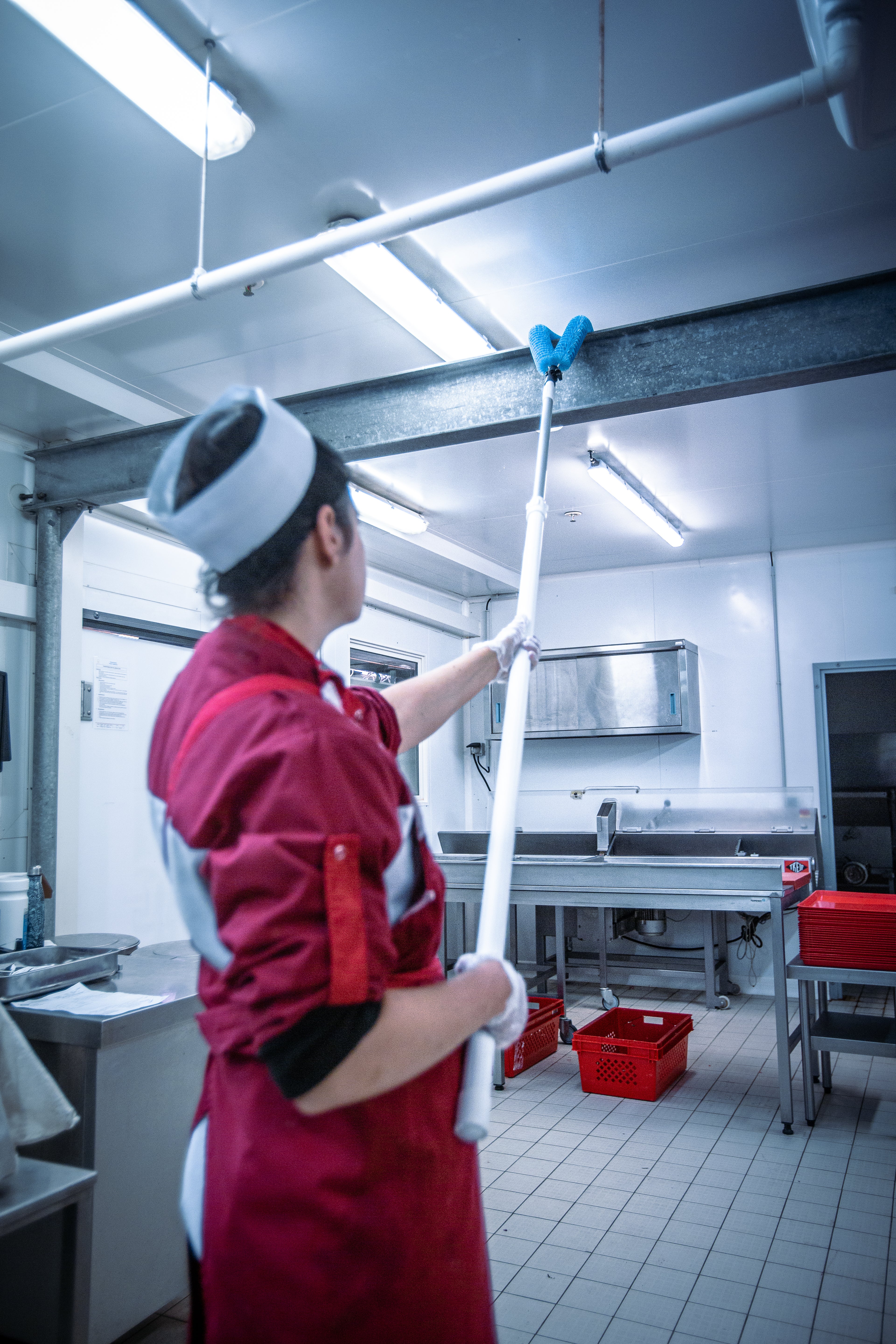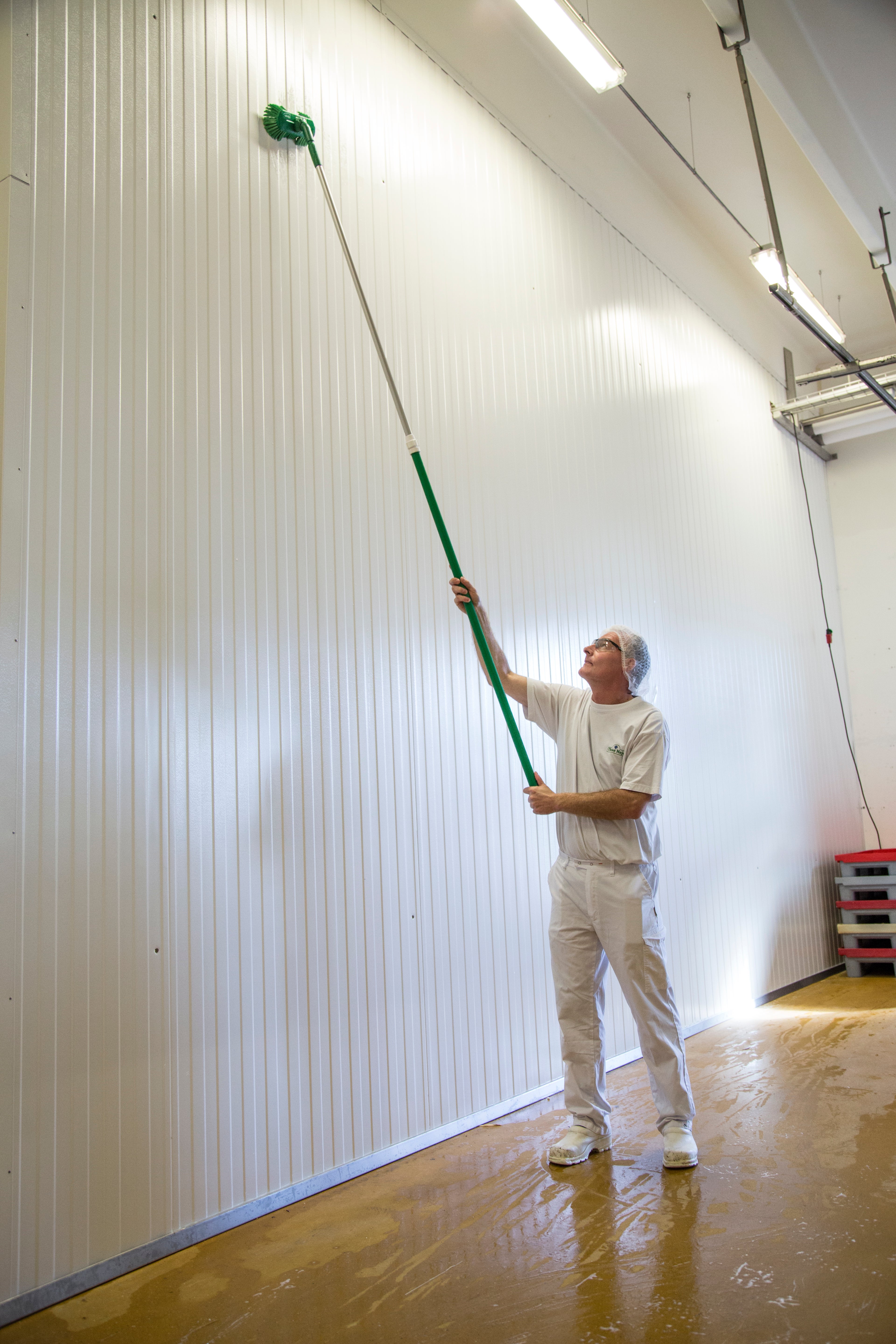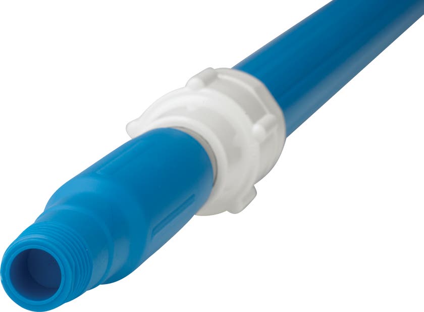 Aluminiumsteleskopskaft 1575–2780 mm. Detta teleskopskaft kan enkelt justeras till önskad längd, vilket gör det perfekt för rengöring av väggar och tak. Den ergonomiska utformningen och det komfortabla handtaget förbättrar användarkomforten. Skruvgängad. Det kan användas tillsammans med alla Vikan-sortimentets produkter. Får inte användas tillsammans med syra eller klor.