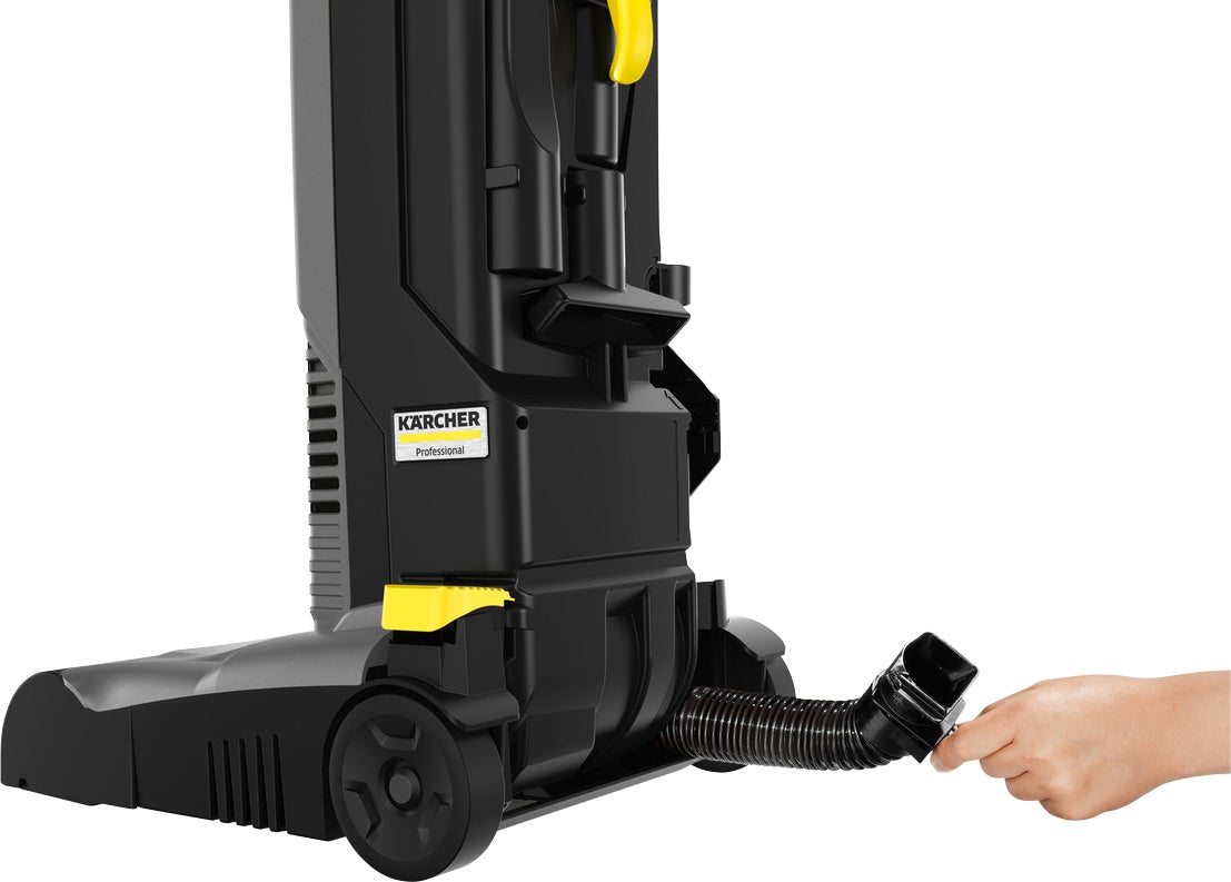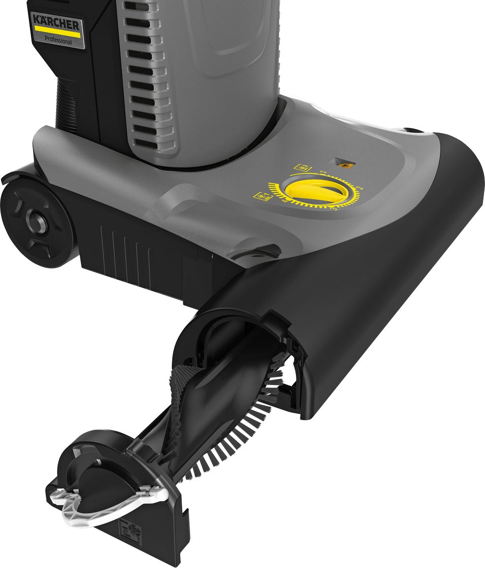 Dess låga vikt och ergonomiska handtag möjliggör bekväm hantering och arbete under långa stunder utan att bli trött. Tillbehör som är integrerade direkt på maskinen utökar antalet möjliga användningsområden med snabb och effektiv rengöring längs kanter och små utrymmen, och med hjälp av en optisk borstvalsjustering kan borsten ställas in exakt efter mattans fiberlängd.