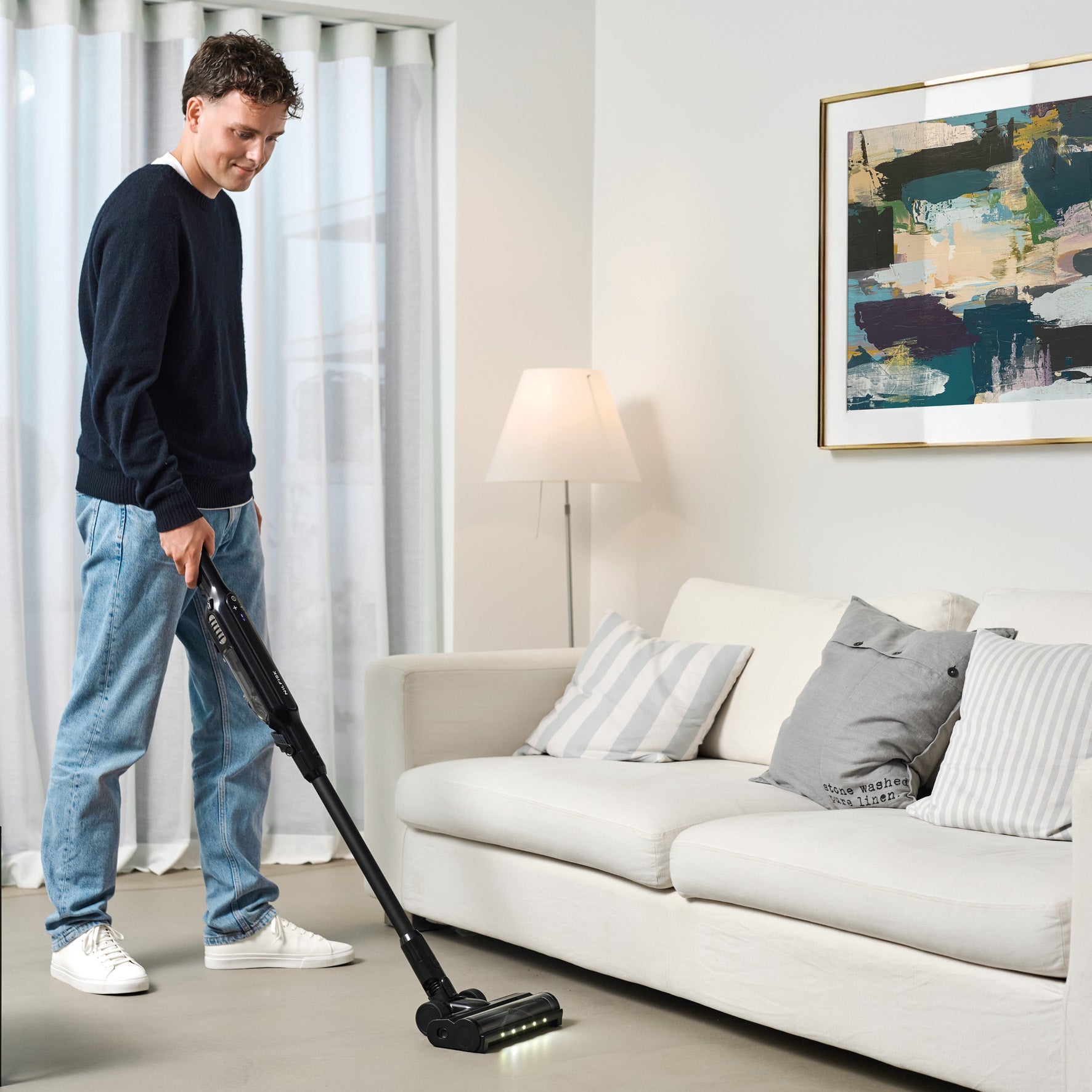 Den smarta 2‑i‑1‑lösningen gör att du snabbt kan växla mellan stående dammsugning och handhållen funktion för att komma åt alla ytor. Den starka sugkraften ger effektiv rengöring av både hårda golv och mattor, och du får upp till 30 minuters drifttid per laddning. Den inbyggda borsten är perfekt för snabb rengöring av möbler och andra ytor, och med det medföljande väggfästet kan du förvara dammsugaren prydligt och lättillgängligt. Modellen kan dessutom stå upprätt utan väggfäste eller dockningsstation.