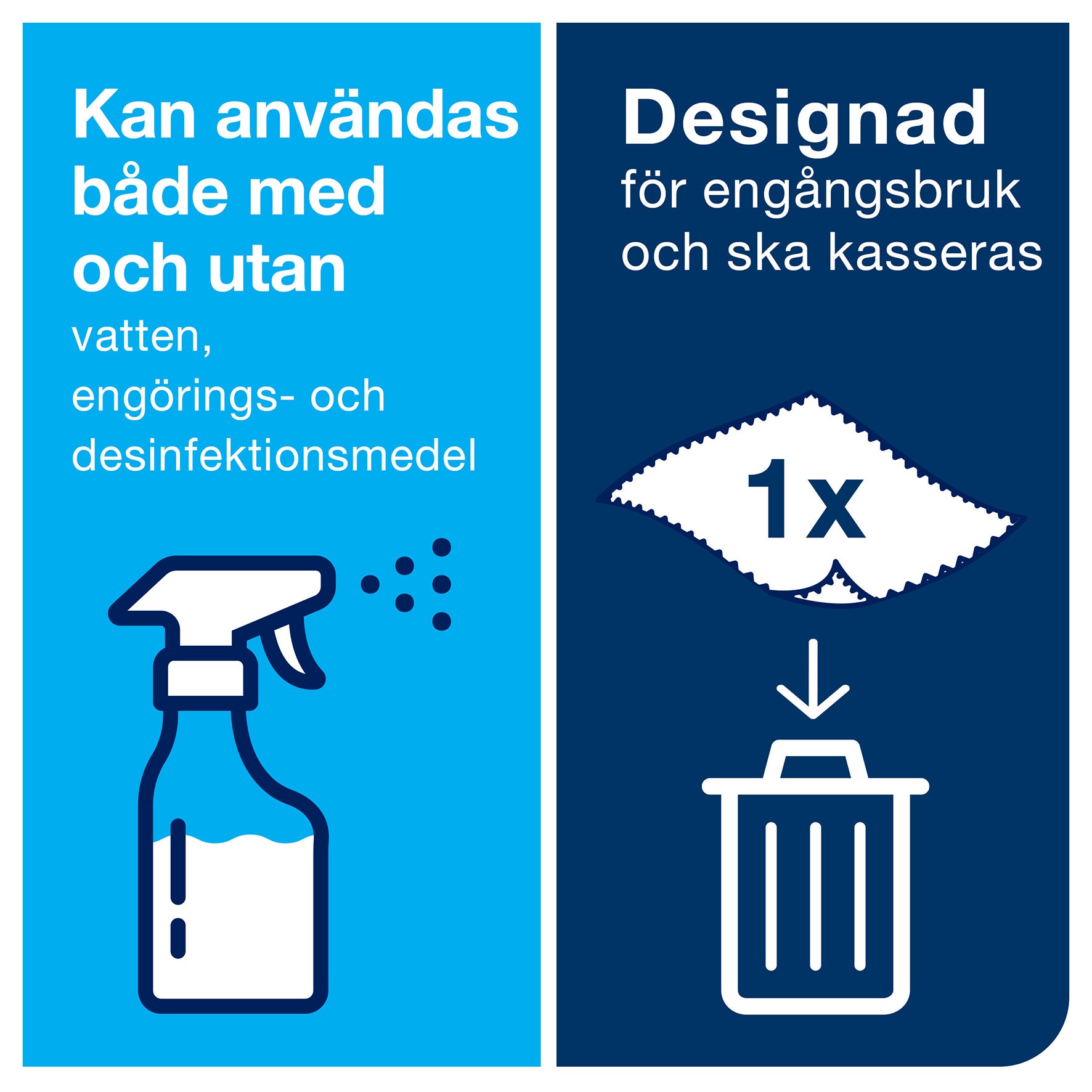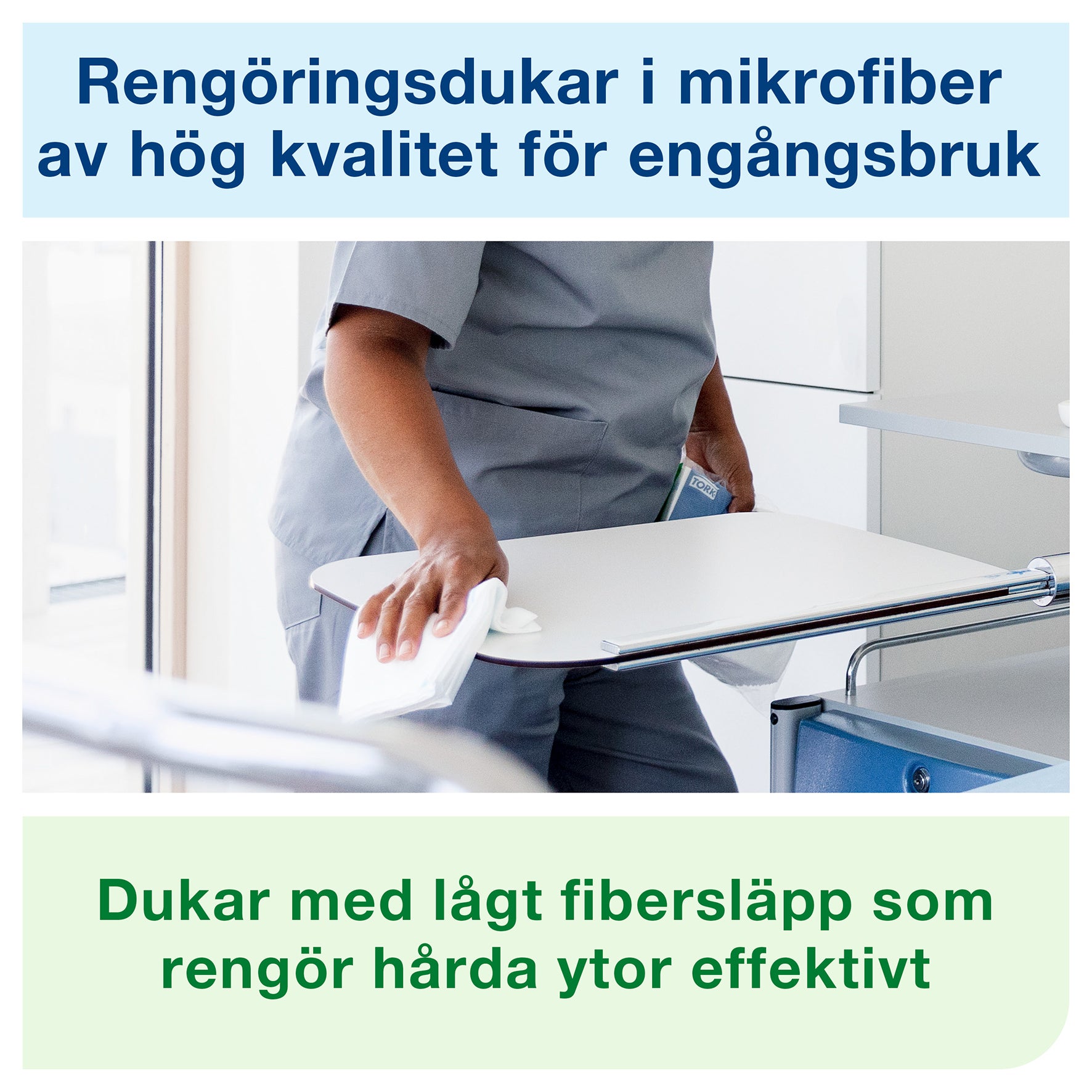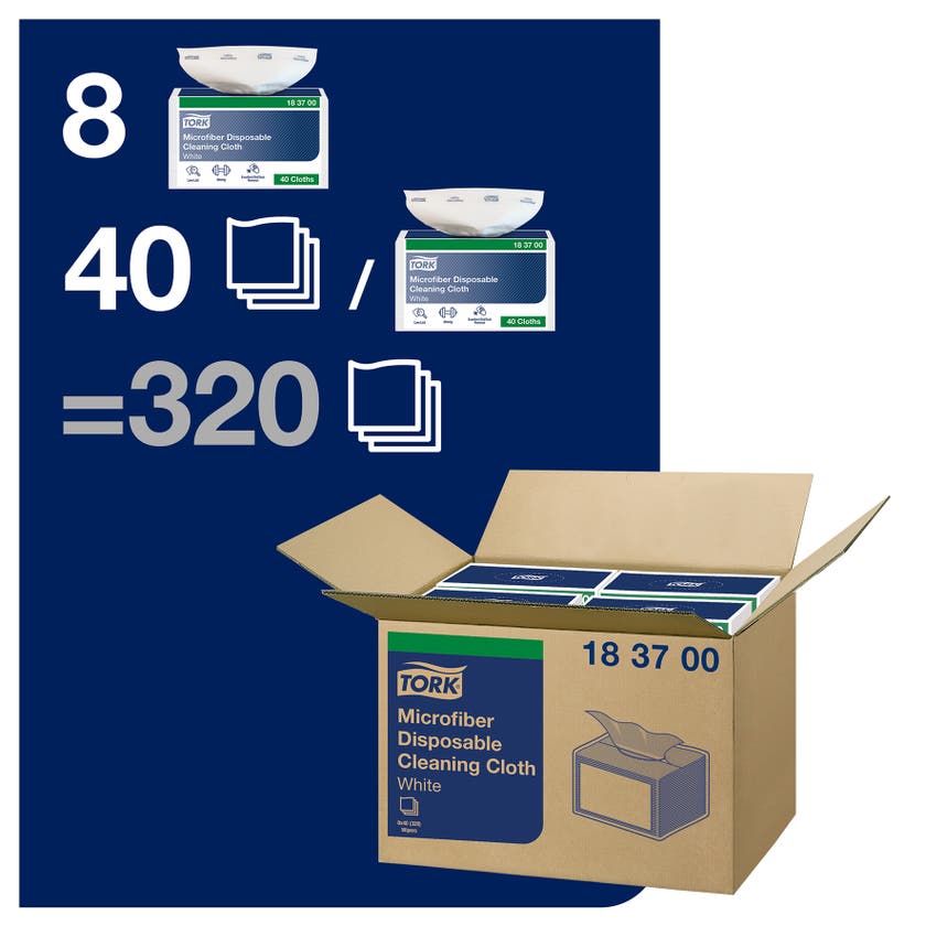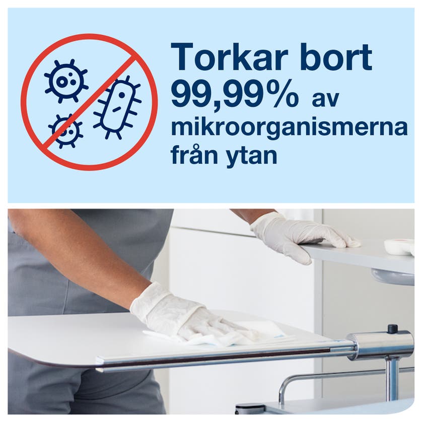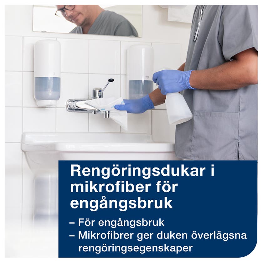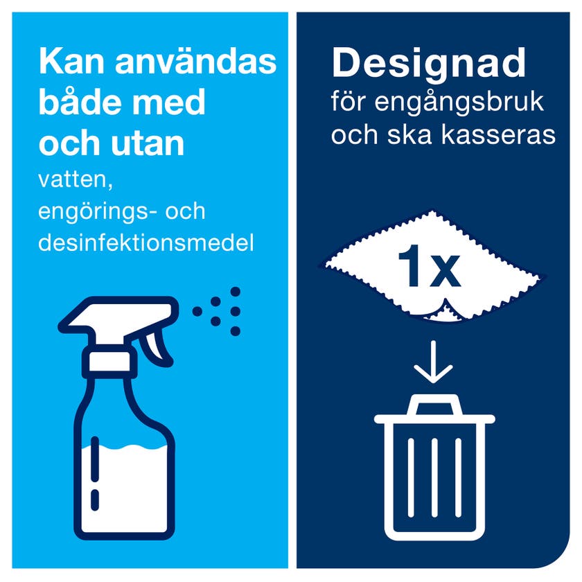 Grundlig rengöring med Torks Rengöringsdukar i mikrofiber för engångsbruk. Allsidig användning - torra, fuktiga eller våta - antingen med enbart vatten eller med rengörings- och desinfektionsmedel.