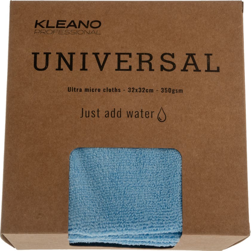 Kleano Universal Mikrofiberduk 32×32 cm. Högeffektiv duk av mikrofiber som kan användas både torr och fuktig på de flesta underlag med höga rengöringskrav. Torr samlar den upp damm och andra småpartiklar från ytan. Fuktig rengör duken effektivt ytan från smuts, fettpartiklar och bakterier. Rengör effektivt även utan kemikalier.