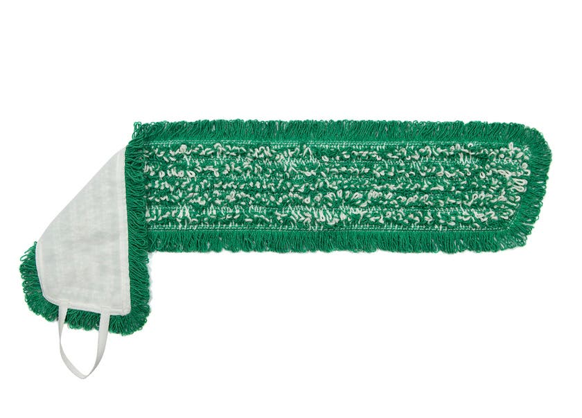 Effektiv och slitstark fukt- och våtmopp av mycket hög materialkvalité. En unik sammansättning av korta öglor i olika storlekar av bomull och syntet sydda på baksidan av en kardborrvelour med öglad ytterfrans.