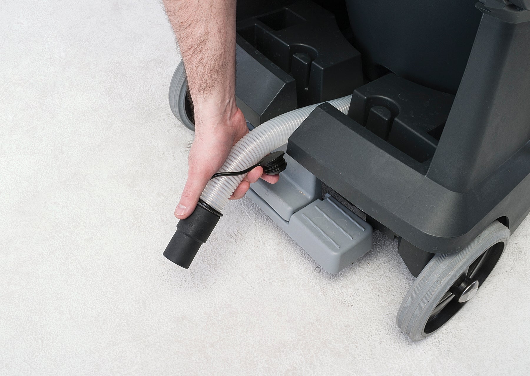 - Tömning av behållaren görs utan att motortoppen tas av, vilket gör arbetet enklare och snabbare samtidigt som det minskar risken för felhantering och felmontering av delar