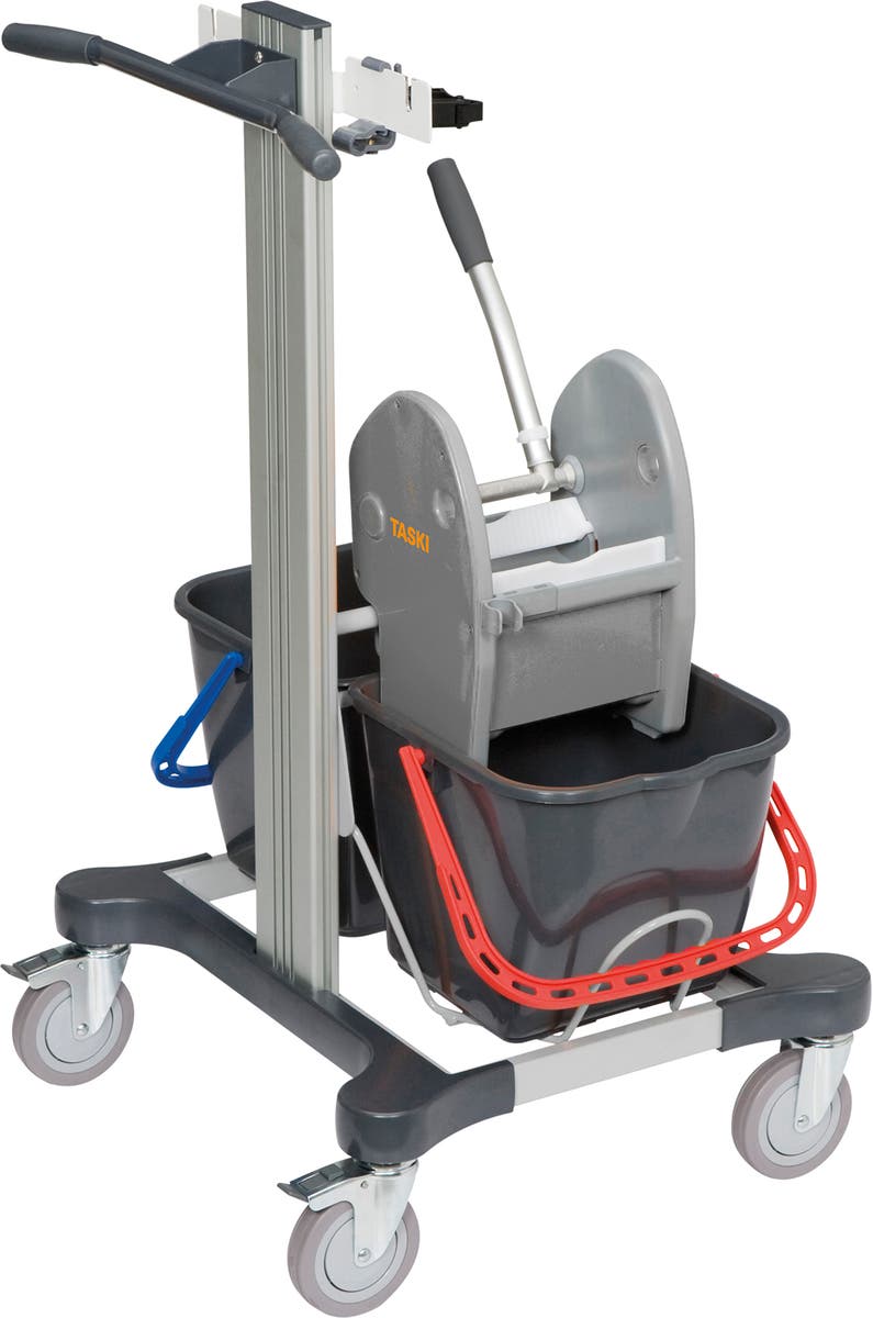 Taski Micro svabbvagn är en liten ultrakompakt, stabil och tålig svabbvagn som är lämplig att använda för rengöring av små och mellanstora städområden.