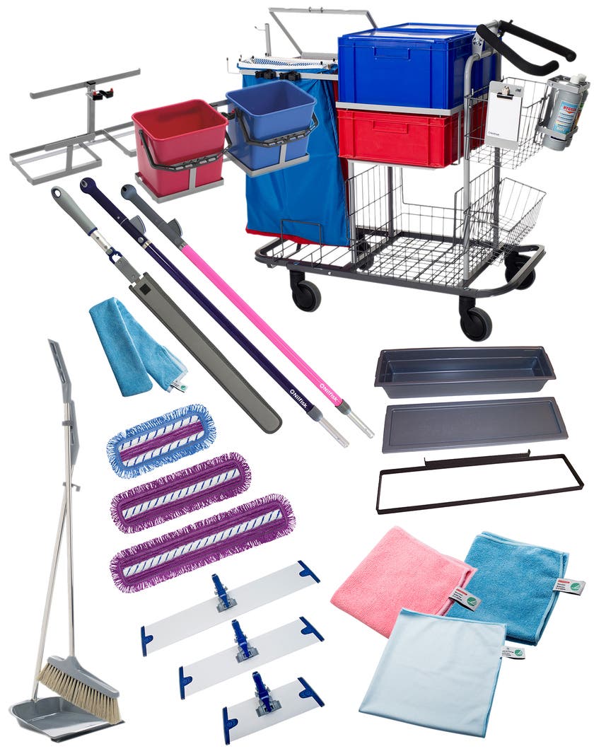 Innehåller en stor och robust städvagn, moppar, skaft och allt annat du behöver för effektiv metodstädning. Monterat och klart - Allt i en kartong - effektivt och tidsbesparande när du inte behöver leta efter de olika produkterna för att få ett helt komplett set.