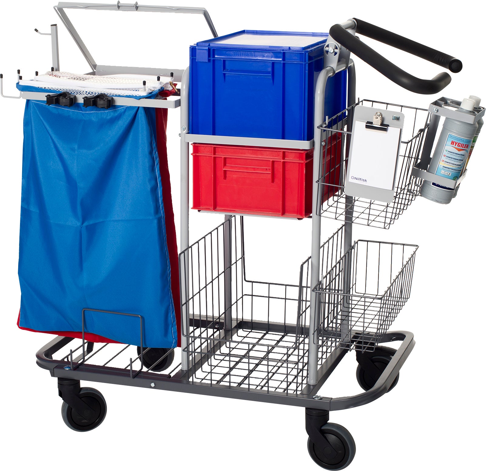 S2 Systemvagn är en liten och komplett ergonomisk städvagn. Smidig och robust vagn för de flesta städområden. Vagnen är av hög kvalitet för moderna städmetoder. Systemvagnen är anpassningsbar med hjälp av en lång rad praktiska tillbehör. Komplett med med 3 st korgar, tröskelkrypare, sopsetshållare, 1 st 20 L back, 1 st 15 L back, 2 st tvättsäckar, 2 st tvättnät. Det gör vagnen till en ergonomisk och smidig lösning för de flesta städområden.