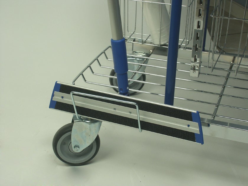 Stativhållaren håller stativ och mopp stabilt förankrade till städvagnens underrede.