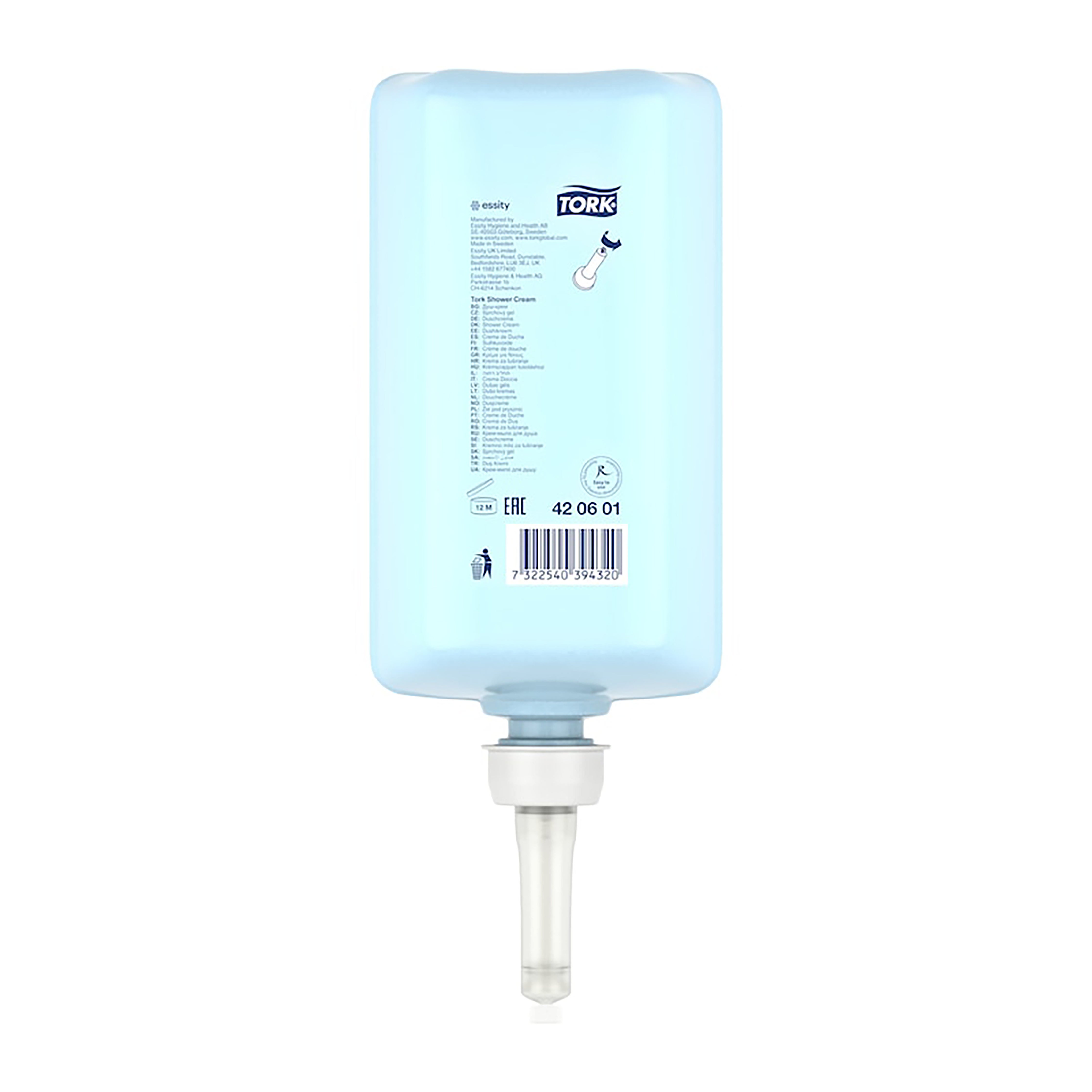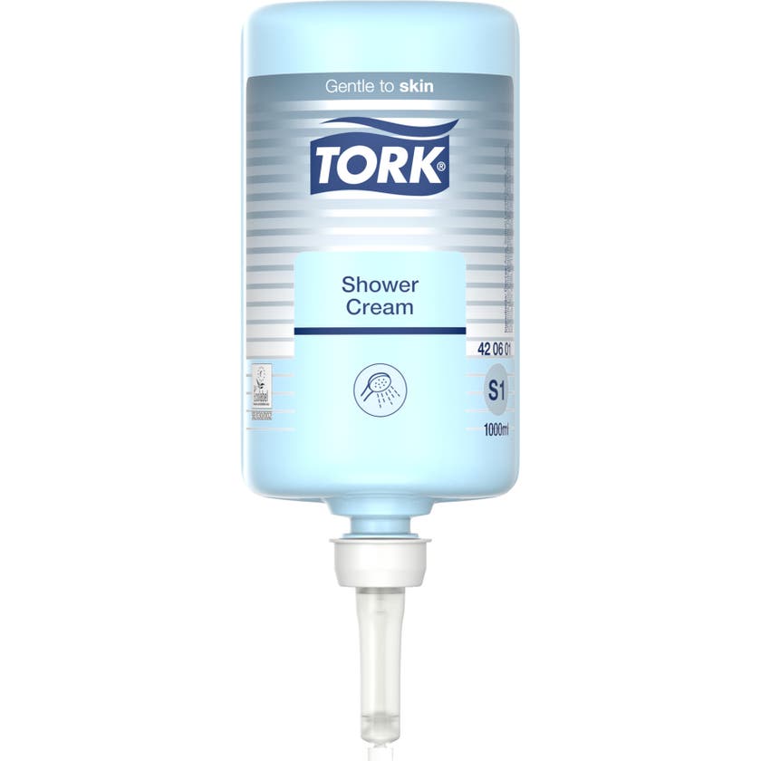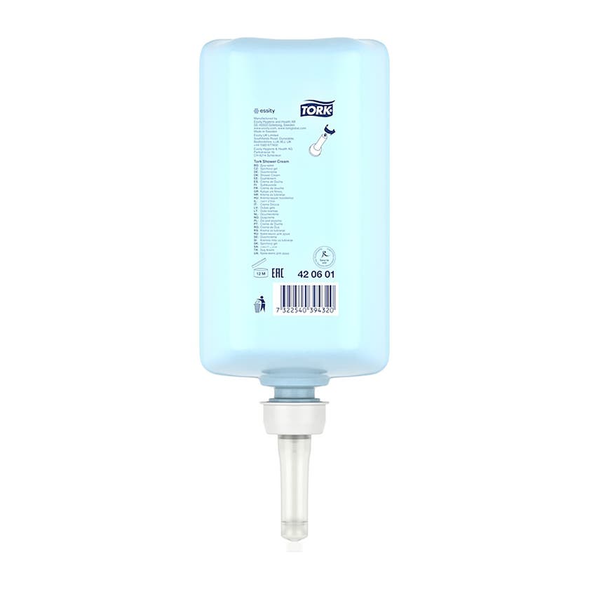 Duschcreme Tork S1 1000 ml Tork Duschcreme är en vårdande, återfuktande och pärlskimrande duschcreme med en fräsch doft som passar både kvinnor och män. Perfekt för hotell, skolor och sportanläggningar. Passar med Tork Dispenser Flytande Tvål och Spraytvål som har certifierats med Easy to use och tillhandahåller god handhygien för alla användare. Sluten refillflaska med engångspump för optimal hygien och enkel påfyllning.