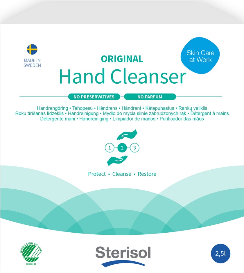 Sterisol ORGINAL flytande handrengörning som är oparfymerad. Effektiv mot besvärlig smuts på händerna. På arbetsplatser där man blir utsatt för kraftig smuts är det viktigt att använda en så mild rengöringsprodukt som möjligt. Man bör därför testa denna produkt på rätt sätt innan man använder produkter som innehåller slipmedel.