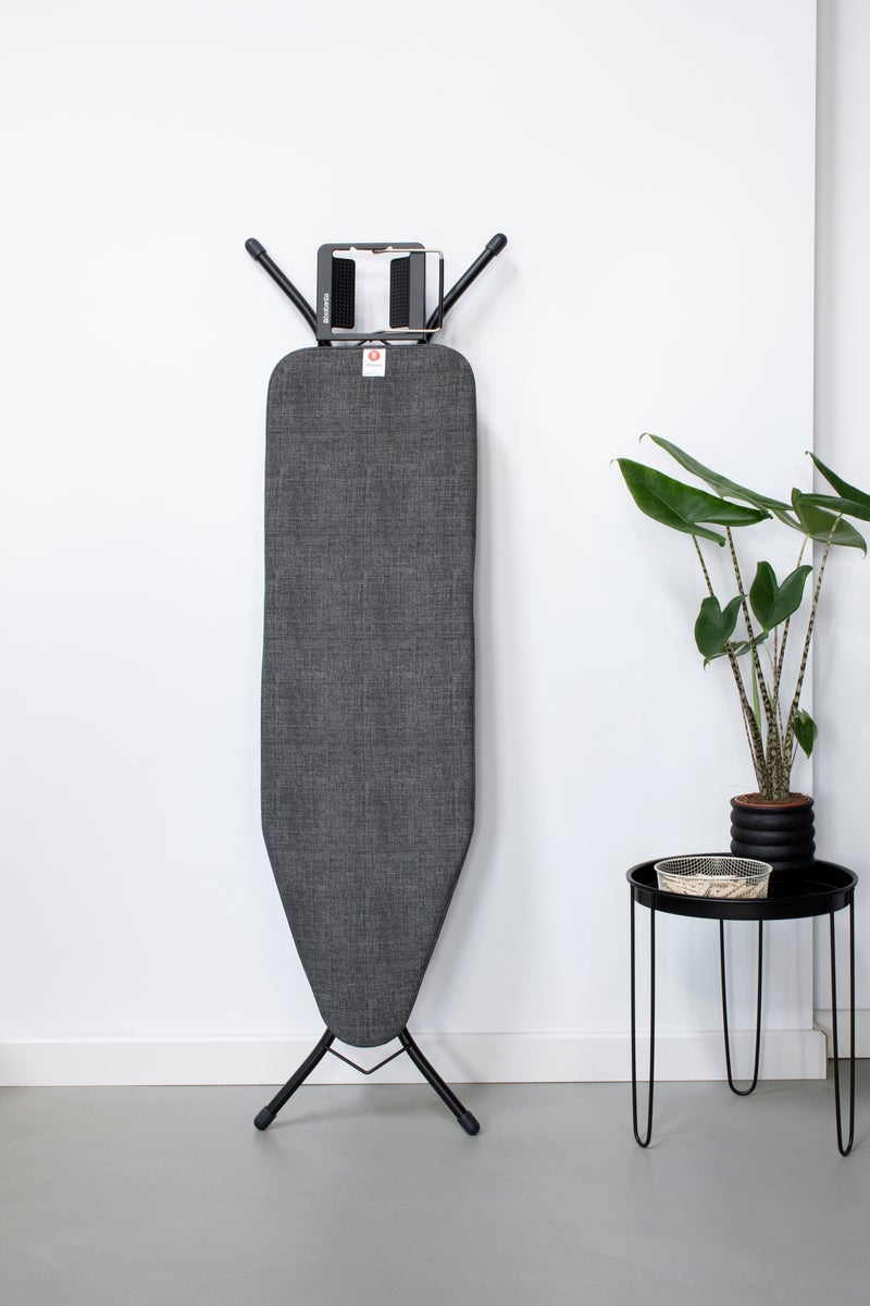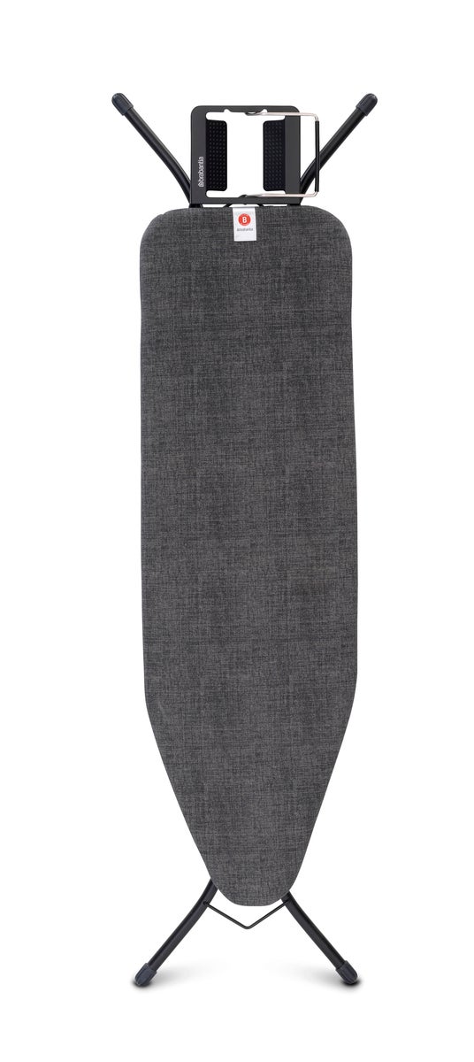 Strykbord från Brabantia. Modellen är robust, stabil och designad för enkel och smidig strykning. Med hållare för ångstrykjärn. Strykbordet har en stabil ram som går att justera till önskad arbetshöjd. Smart transportlås som förhindrar att strykbordet fälls ut av misstag. Överdrag i 100% bomull med fjädrande skumlager, som tack vare sitt Stretch-System håller överdraget jämnt och spänt. Problemfri användning – 10 års garanti och service från Brabantia.
