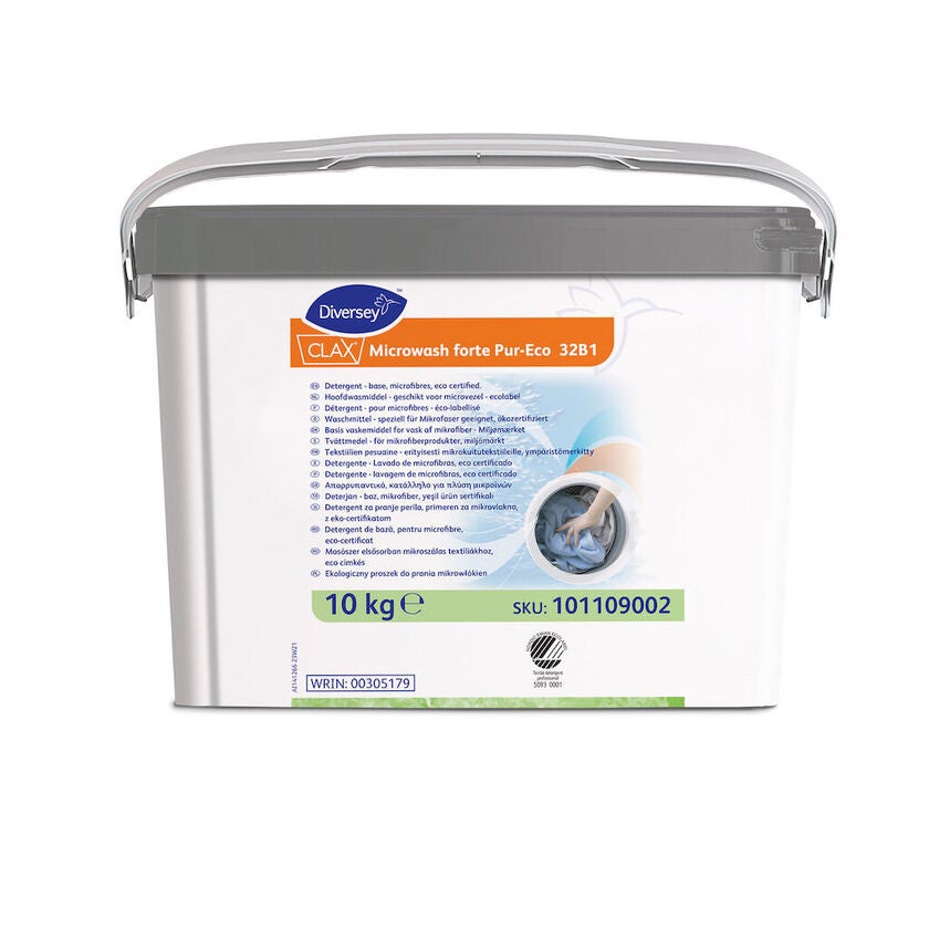 Tvättmedel Clax Microwash Forte 10 Kg. Clax Microwash Forte pulvertvättmedel Pur-Eco PE 32B1, W3251. Tvättmedel för professionellt bruk. Speciellt utvecklad för effektiv och skonsam tvätt av mikrofiberprodukter som moppar och dukar, men även för kulörtvätt av andra textilier.