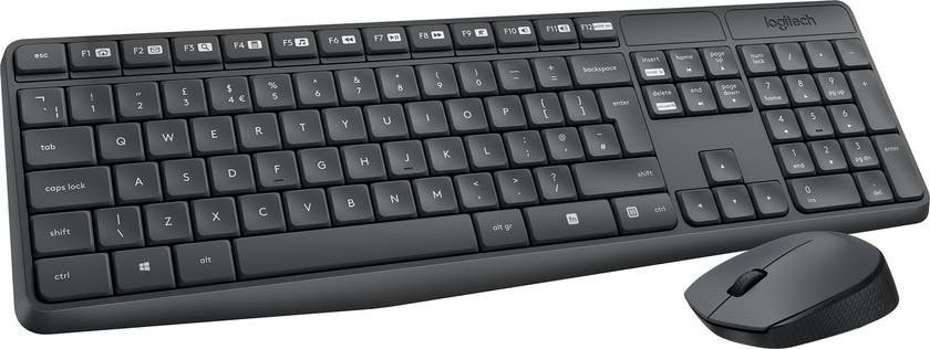 Logitech MK235 ett paket med trådlös mus och trådlöst tangentbord. Ett lättinstallerat tangentbord och mus med pålitlig trådlös anslutning på upp till 10 meter som delar på en liten USBmottagare (128-bitars AES-kryptering mellan enheter och mottagare). Problemfri koppling och programvaruinstallation. Skriv bekvämt på ett välbekant tangentbord med piltangenter i normalstorlek, numeriskt tangentbord och enkel åtkomst till 15 snabbtangenter.