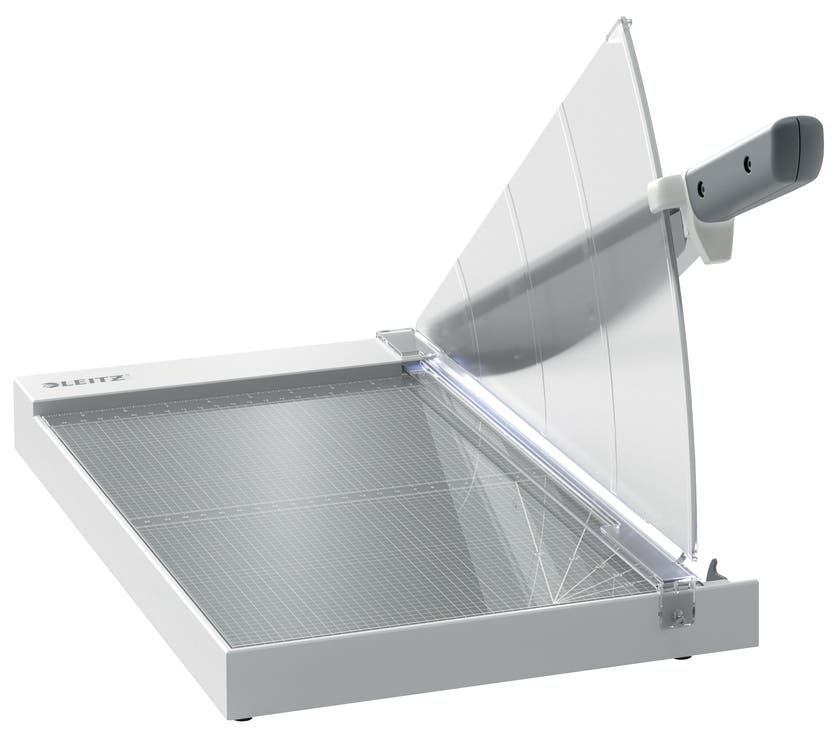 Leitz Precision Office A4+ skärmaskin är perfekt för allmän kontorsanvändning för att skära papper, etiketter, film, foton, laminat, kort och kartong. Denna kraftfulla och robusta skärmaskin för kontoret klipper utan ansträngning upp till 15 ark A4-papper (80 gsm) med snabbhet och precision. Har unik EdgeGlow-ljusteknik som belyser skärkanten för bättre synlighet och maximal precision. Den tydliga, manuella pappersklämman håller pappret säkert, medan det ergonomiska handtaget gör det bekvämt och enkelt att skära. Det går snabbt och enkelt att rikta in pappret med hjälp av de enkla riktlinjerna på den släta arbetsytan av glas. Det säkra säkerhetsskyddet för bladet ger totalt skydd och säkerhetslåset håller bladet låst när det inte används. Med ett blad i rostfritt stål av hög kvalitet, en robust arbetsyta och en utökad femårsgaranti kan du vara säker på att den här A4+ skärmaskinen kommer att ge noggrann skärning i många år.