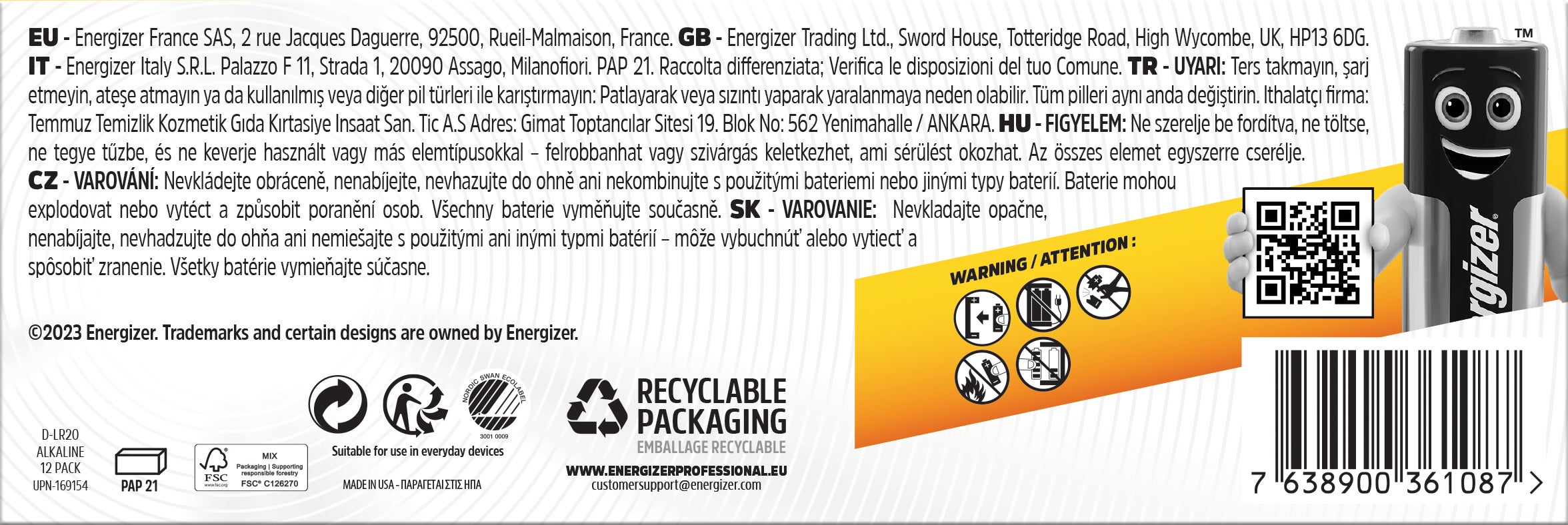 | Namn | Batteri Industrial Alkaliskt D LR20 Energizer 12-pack |