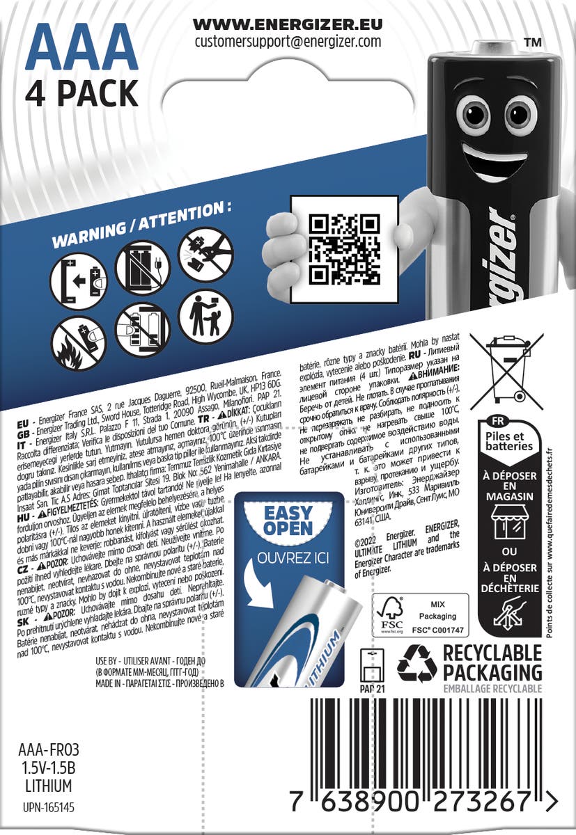 Energizer Batteri Lithium AAA FR03. Passar i högteknologiska enheter.