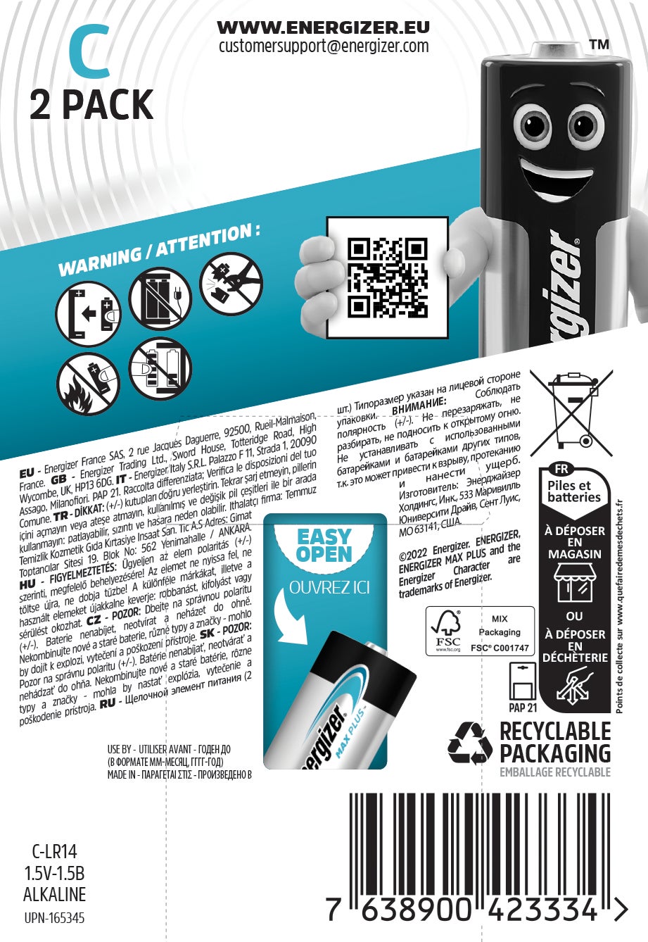 Långvarig kraft och innovation är vad Energizer MAX PLUS handlar om. Energizer MAX PLUS C-batterier håller ström i upp till 12 år under lagring, så du har ström när du behöver det mest. De är också lämpliga för långvarig lagring utan att förlora ström.