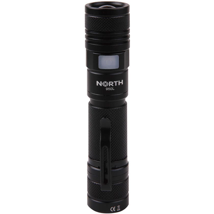 Ficklampa North uppladdningsbar ficklampa med USB-A kabel utrustad med LED-indikator för ON/OFF samt indikerar när batteriet behöver laddas. Ficklampan har fem olika lägen som enkelt skiftas i mellan genom upprepande tryck på On-/Off-knappen. Fem ljuslägen: