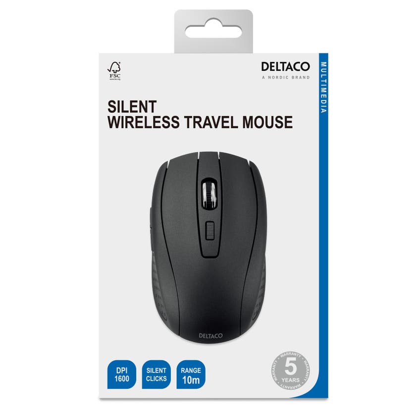Trådlös datormus från Deltaco – perfekt för den moderna resenären. Den kompakta och portabla musen är utformad för att vara både bekväm vid längre användning, och enkel att ta med sig. De tysta knapparna bidrar till en lugn arbetsmiljö, och totalt finns sex tysta knappar för smidig och diskret navigering. Med justerbar DPI (800/1200/1600) och en uppdateringsfrekvens på 125 Hz får du exakt precision och snabba, följsamma pekarrörelser. Musen drivs av två AAA-batterier och ansluts enkelt till dina enheter via en 2,4 GHz USB-mottagare.