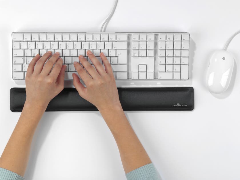 Ergonomisk geléfyllt handledsstöd som förebygger musarmsbesvär. Ovansida av mjuk polyester. Undersida med antiglidskydd som gör att den ligger still.