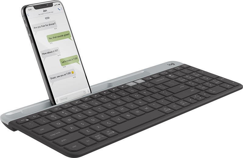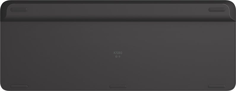 Tangentbord Logitech K580 Slim Multi-Device trådlös. Minimalistisk. Modern. För flera enheter. Äg ditt utrymme med tangentbordet K580 Slim för flera enheter. Gör vilket utrymme som helst modernt och mångsidigt med K580 Slim för flera enheter – ett ultratunt tangentbord med modern design som är perfekt för att skriva ner idéer på datorn och sedan växla till att skriva en text på smarttelefonen. Den idealiska följeslagaren för vardagens många skiftande uppgifter.