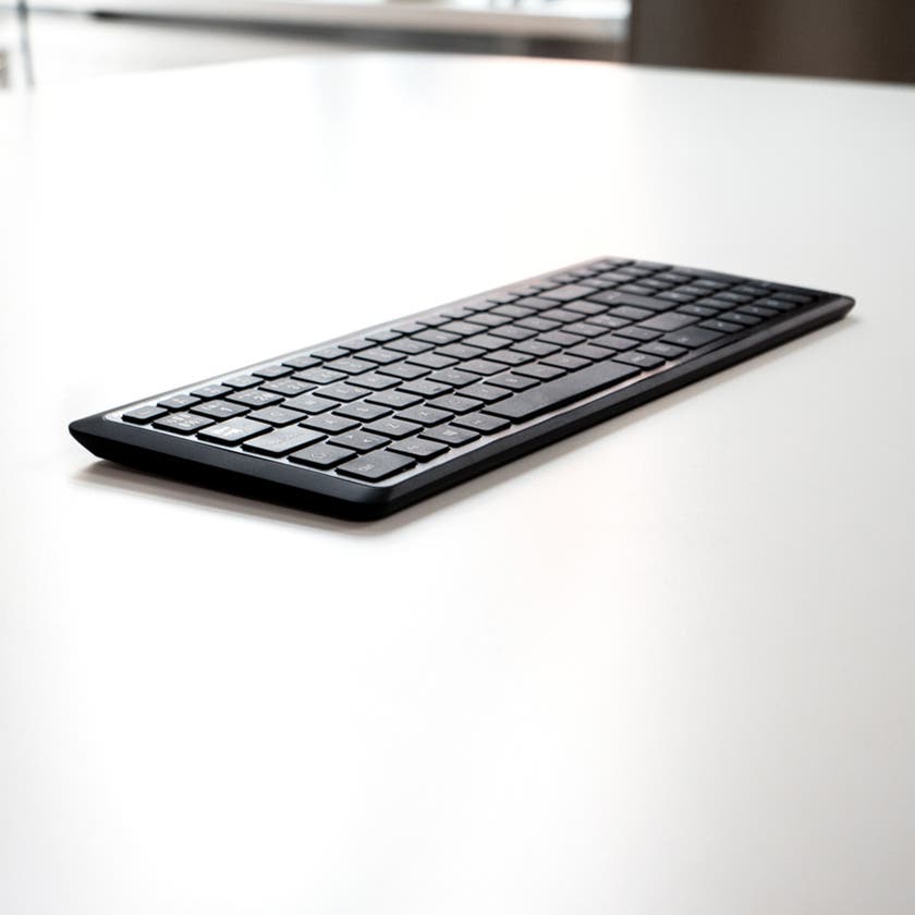 Tangentbordet Mousetrapper Type Midi – kompakt design med med full funktionalitet! Ergonomiskt, trådlöst tangentbord i smidigt format – komplett med numeriska tangenter. Höjden kan lätt justeras för optimal arbetsställning. Tillverkat i Sverige av återvunnen plast.