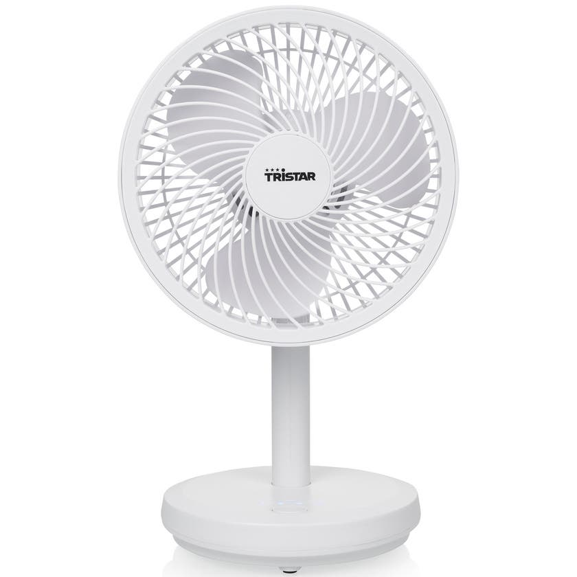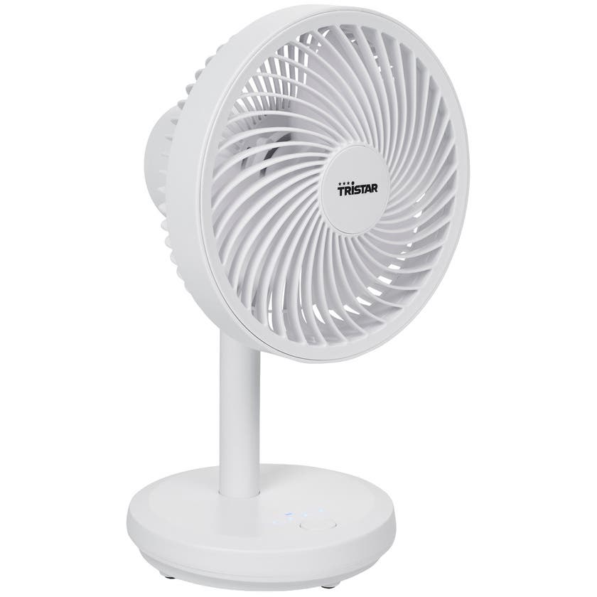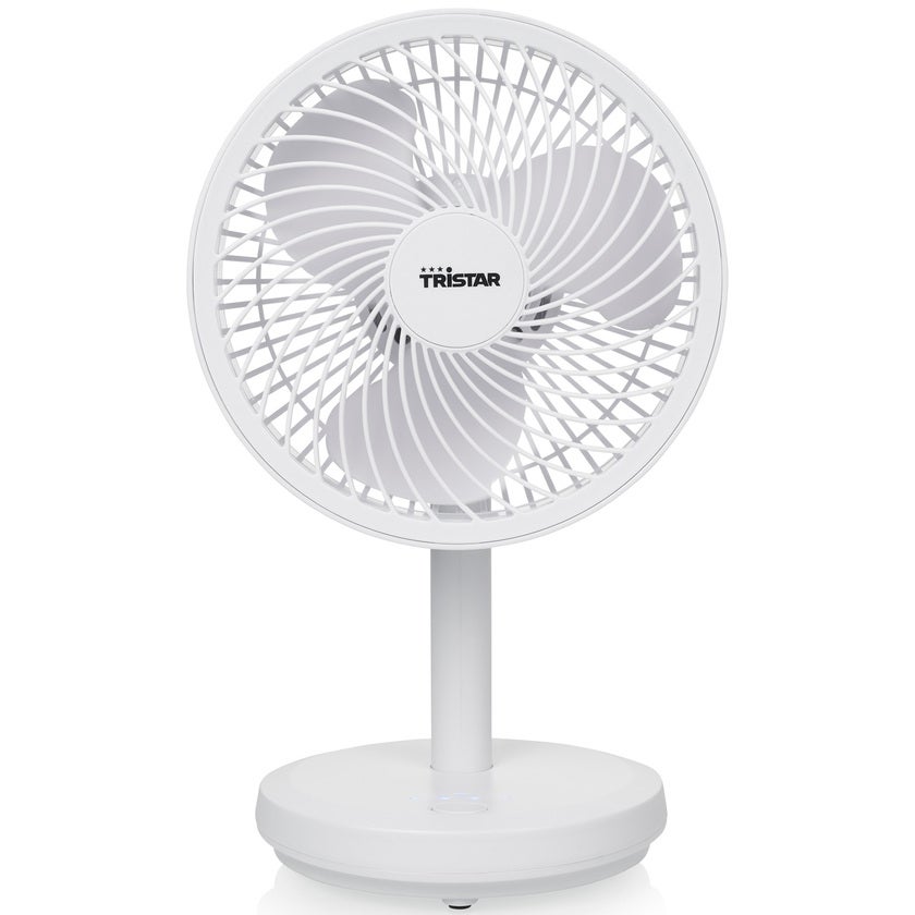 Med Tristar VE-5841 får du alltid svalka nära till hands. Denna smidiga, trådlösa USB-fläkt är utrustad med oscillerande funktion och fyra olika hastighetslägen. Perfekt för skrivbordet när du jobbar hemifrån eller på kontoret. Fläkten laddas enkelt med den medföljande USB-kabeln.