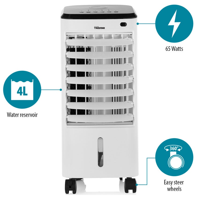 Njut av en behaglig och sval bris under heta sommardagar med luftkylare AT-5446 från Tristar. Placera den där du vill ha extra frisk luft och slipp den tryckande värmen – låt dig svepas in i en uppfriskande bris.