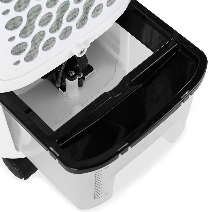 Luftkylaren erbjuder tre olika lägen: normal, natur och sömn. Natur-läget varierar luftflödet för att efterlikna känslan av en skön promenad längs stranden, medan sömnläget sänker ljudnivån så att du kan sova ostört och ändå njuta av sval luft. Du kan dessutom välja mellan tre olika styrkor – 800, 1000 eller 1200 varv per minut – tack vare den kraftfulla men tysta 45 W-motorn. Den generösa vattentanken på 4 liter gör att luftkylaren kan användas under lång tid utan att behöva fyllas på.