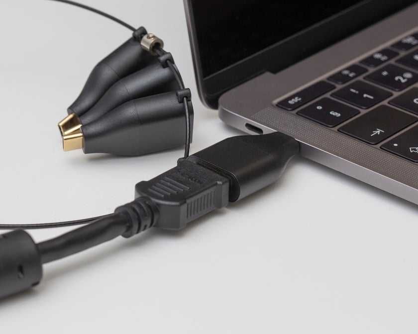 Adapter-ring Office USBC-AR1 - mDP/DP/VGA/HDMI, Deltaco. Med USBC-AR1 kan du göra en laptop, stationär dator, smartphone eller annan enhet med en USB-C ingång kompatibel med ett flertal olika anslutningsalternativ (mini DisplayPort, DisplayPort, VGA, HDMI). Perfekt för skolor, hotell konferensrum, och andra platser där olika enheter ska anslutas till exempelvis en bildskärm eller projektor. Placera i din datorväska om du är på språng eller sätt fast i mötesrummet för USB-C anslutningsflexibilitet.
