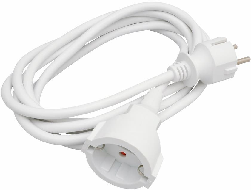 Skarvsladd jordad komplett monterad med stickpropp och skarvuttag. För inomhusbruk.