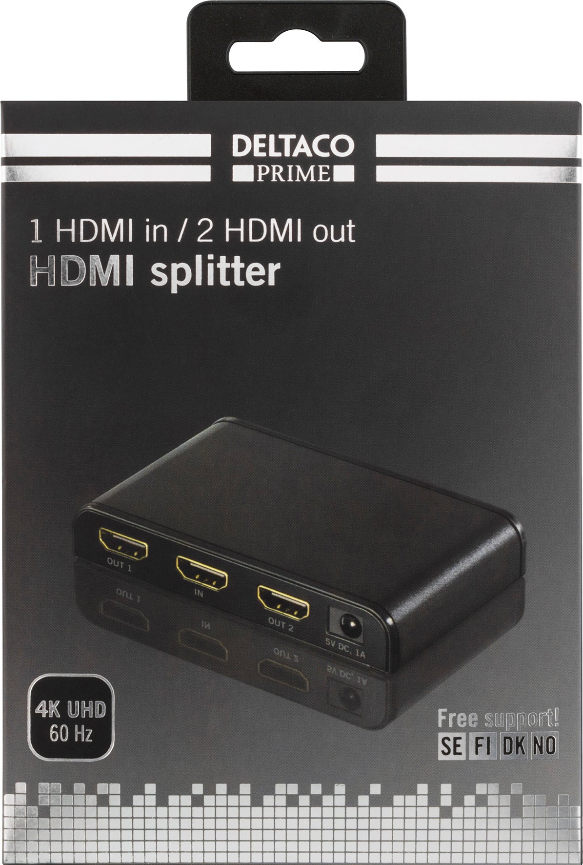 Dltacos Prime HDMI-splitter - 1 enhet till 2 skärmar. Idealisk för att dela bild och ljud från en källa med HDMI till två skärmar. Hanterar en maxupplösning på 4096x2160 i 60Hz.