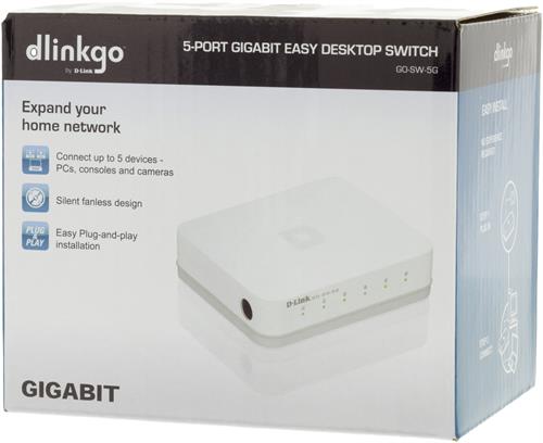 D-Link 5-Port Gigabit Easy Desktop Switch (GO-SW-5G) erbjuder ett prisvärt alternativ för att utöka ett kontors- eller hemnätverk och erhålla Gigabit-anslutning. De 5 st. 1000Base-T RJ-45 Gigabit Ethernet-portarna ger en stabil höghastighetsanslutning via kabel för upp till fem datorer eller andra enheter.