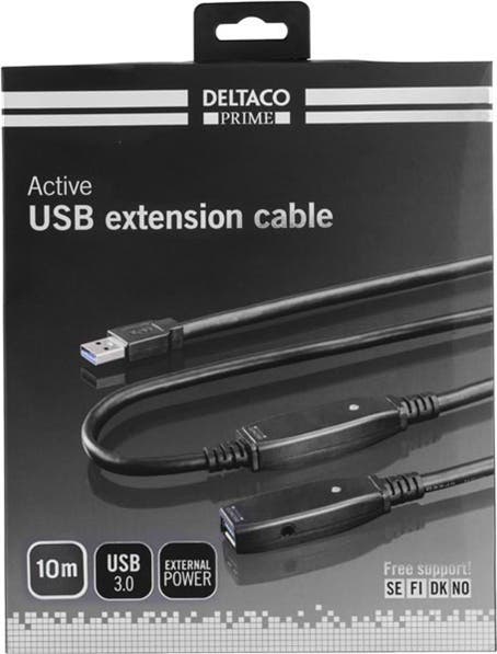 Prime USB 3.0-förlängningskabel från Deltaco. Ta din USB 3.0-anslutning längre än tre meter med en aktiv kabel. Bakåtkompatibel med USB 2.0. Strömförsörjs via USB-porten.